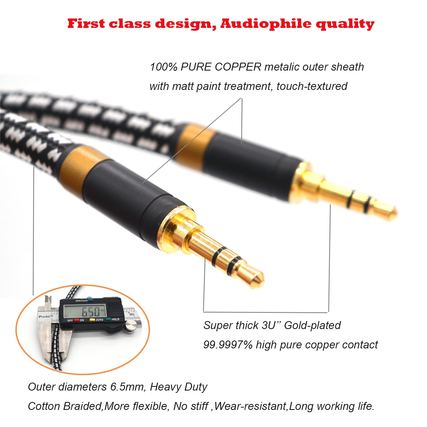 Aux Cord, Audiophile 3.5mm Stereo Audio Cable [0.75m (2.5 Feet), Silvered-Plated Copper core], Unbreakable and Great for Laptop, Tablets,Headphones, Cars and More.
