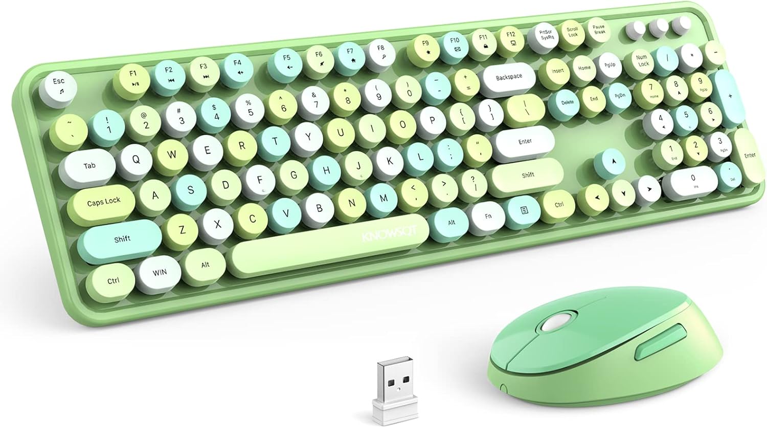 KNOWSQT Wireless Keyboard and Mouse Combo, Green Colorful 2.4G Typewriter Full-Size Retro Keyboards - USB Receiver Plug and Play, for Computer, PC, Laptop, Desktop, Windows