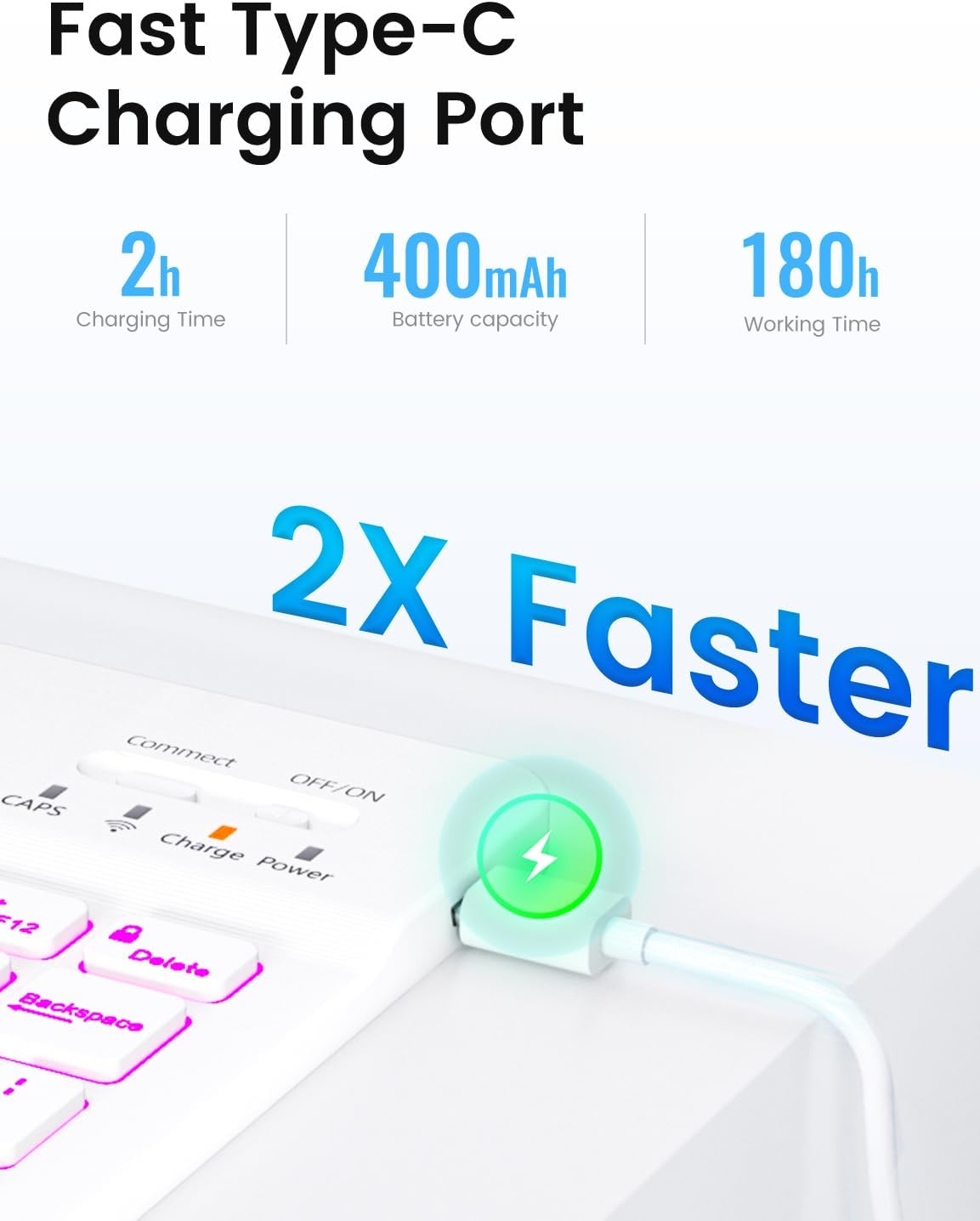 - ⌨️【Long - lasting Battery】The built - in high - capacity rechargeable battery extends the battery life. It can be fully charged in 2 - 3 hours, with a battery life of over 160 hours and a standby time of 90 days. There is an energy - saving mode for longer battery life. If not used for 10 minutes, the keyboard will enter sleep mode. When any key is pressed, it will quickly wake up and reconnect