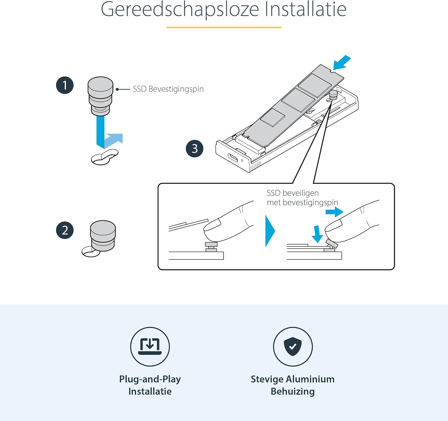 StarTech.com USB-C 10Gbps to M.2 NVMe or M.2 SATA SSD Enclosure - Tool-free External M.2 PCIe/SATA NGFF SSD Aluminum Case - USB Type-C&A Host Cables - Supports 2230/2242/2260/2280 (M2-USB-C-NVME-SATA)