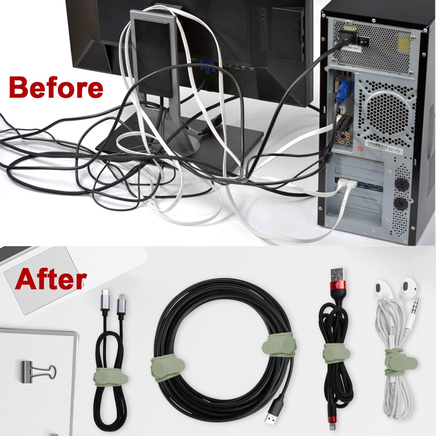 - 【Silicone Material & Multifunction】Our ties are made of high-quality silicone, which is elastic, wear-resistant, easy to clean and reusable. These properties make cable ties widely used. In addition to organizing cables, they can also be used to seal and secure