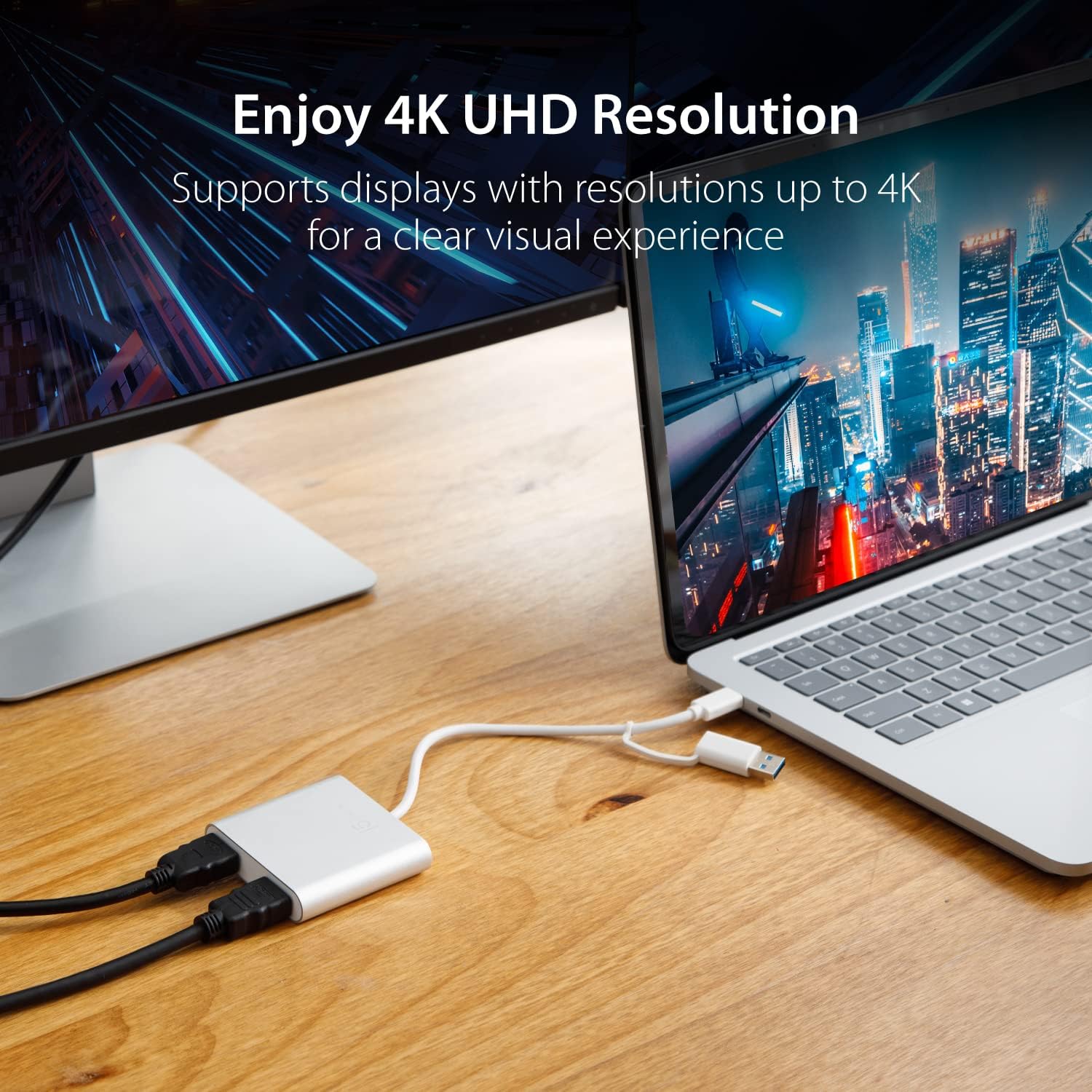 j5create USB-C to Dual HDMI Multi-Monitor Adapter with USB Type-A convertor | 4K + 2K | Compatible with Windows and Mac (JCA365)