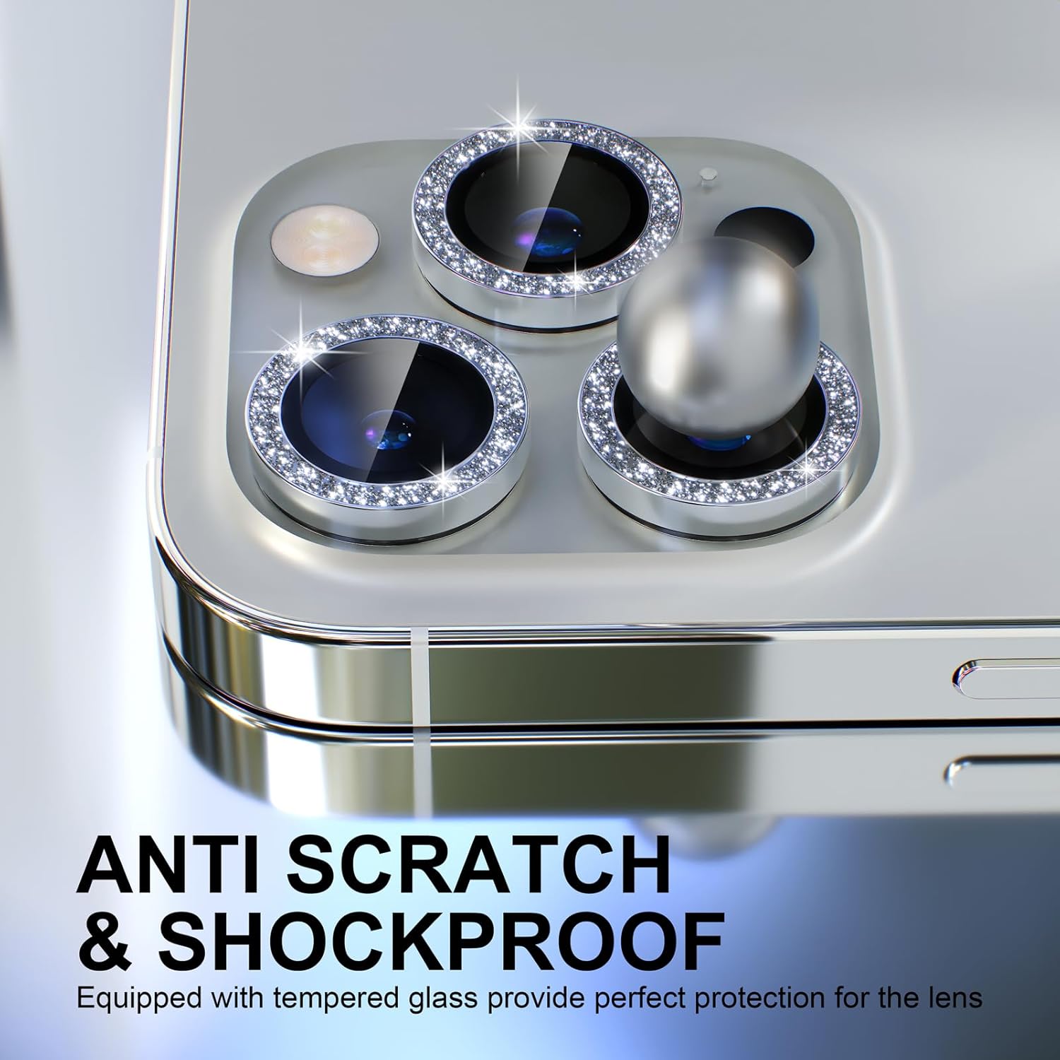 Choiche [3+1 for iPhone 13 Pro/iPhone 13 Pro Max Camera Lens Protector Bling, 9H Tempered Glass Camera Cover Screen Protector Metal Ring Decoration Accessories (Glitter-Silver)