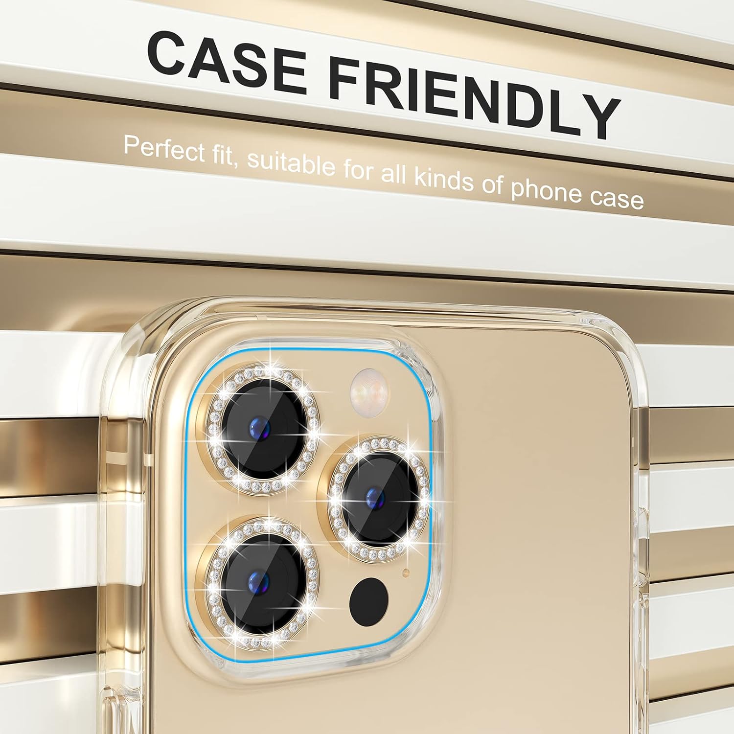 Choiche [3+1 for iPhone 13 Pro/iPhone 13 Pro Max Camera Lens Protector Bling, 9H Tempered Glass Camera Cover Screen Protector Metal Ring Decoration Accessories (Diamond-Gold)