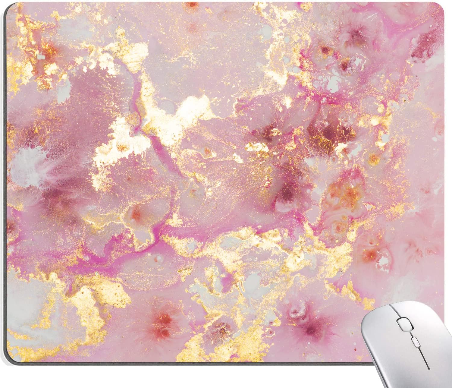 Mouse Pad, Cute Pink Gold Marble Mouse Pads with Design, Square Washable Cloth Personalized Mouse Mat, Gaming Office Home Non-Slip Rubber Base Computer Mousepad