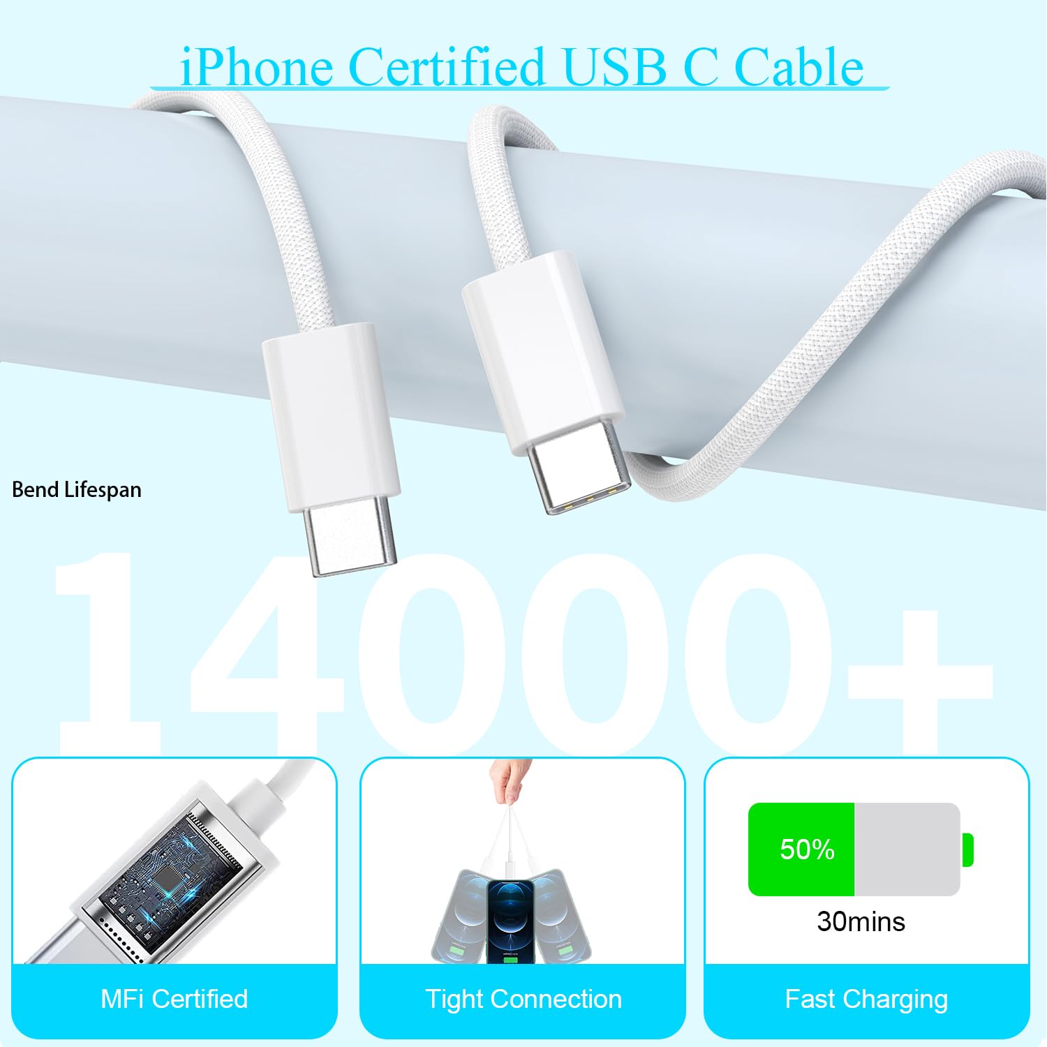 - 【60W Long USBC Woven Cord】480Mbps high speed transferring data from iPhone 16 15 to iPad USB C devices. Strong cables are more durable.10FT long charger cable supports a larger range of use, keeping charger speed and gives you more convenience.