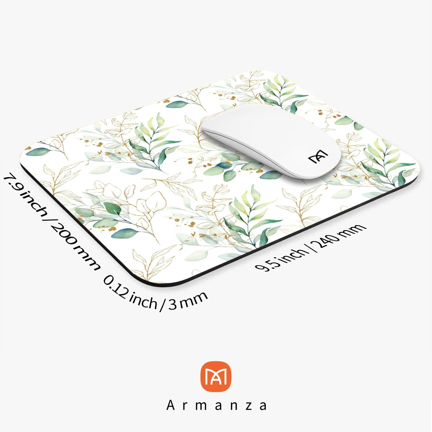 Square Mouse Pad Pretty Leaves, Personalized Premium-Textured Custom Mouse Mat Design, Washable Mousepad Cloth, Non-Slip Rubber Base Computer Mouse Pads for Wireless Mouse