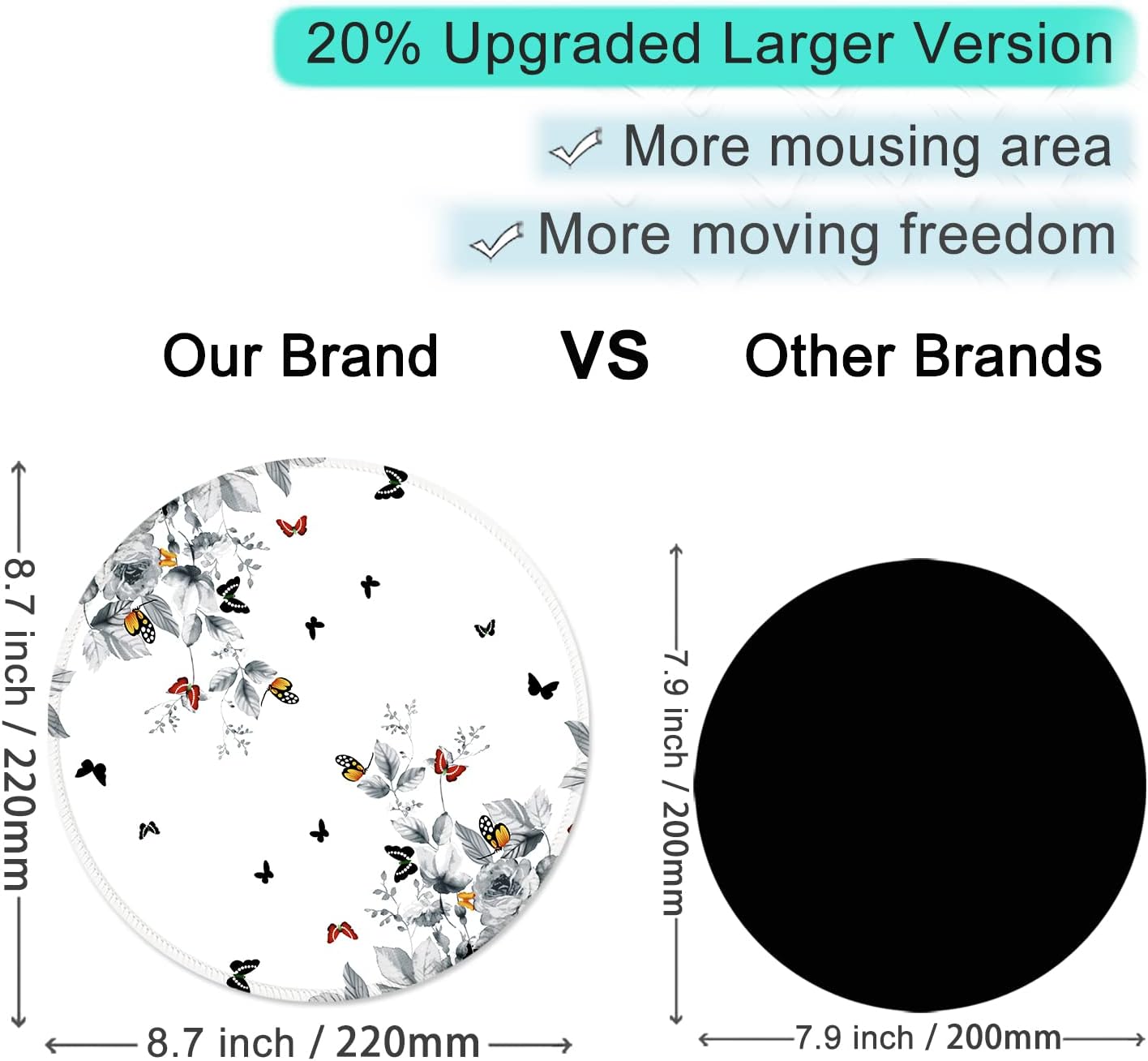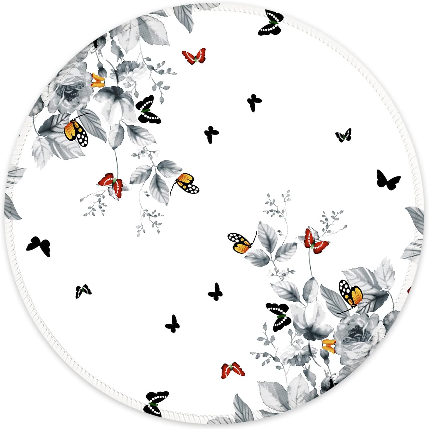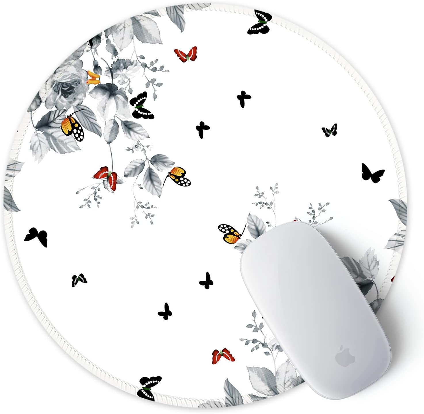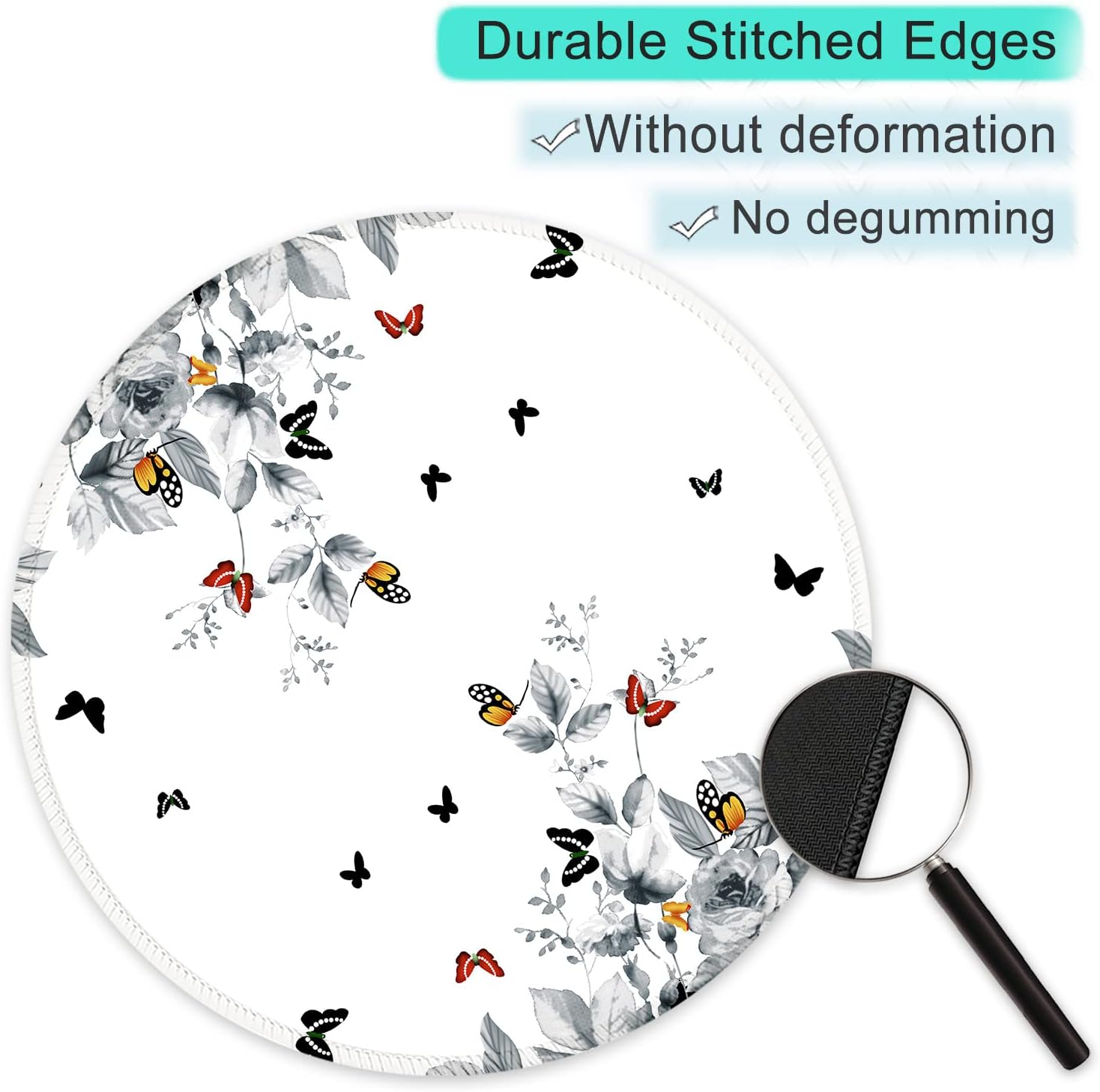 ITNRSIIET Round Mouse Pad with Stitched Edge Premium-Textured Waterproof Non-Slip Rubber Base Desktop Protection Mat Diameter 8.7 inches, Flowers and Butterflies