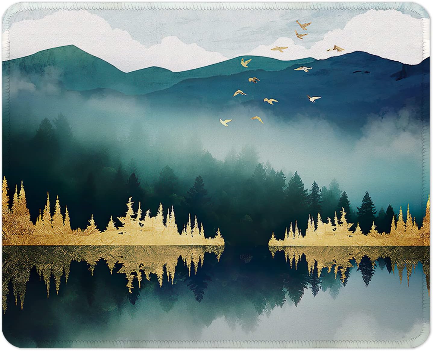 ITNRSIIET Mouse Pad with Stitched Edge Premium Textured Smooth Precise Operation Waterproof Washable Non-Slip Rubber Base Desktop Protection Mat, 10.2×8.3×0.12 inches, Landscape Forest