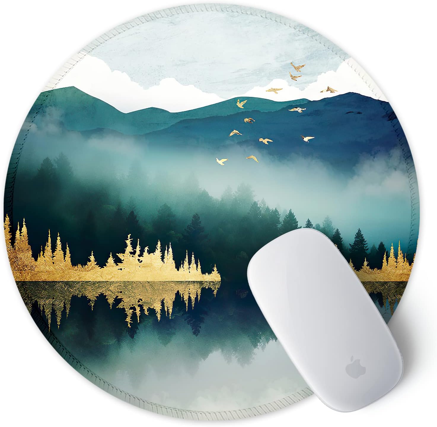 ITNRSIIET Round Mouse Pad with Stitched Edge Premium-Textured Waterproof Non-Slip Rubber Base Desktop Protection Mat Diameter 8.7 inches, Landscape Forest