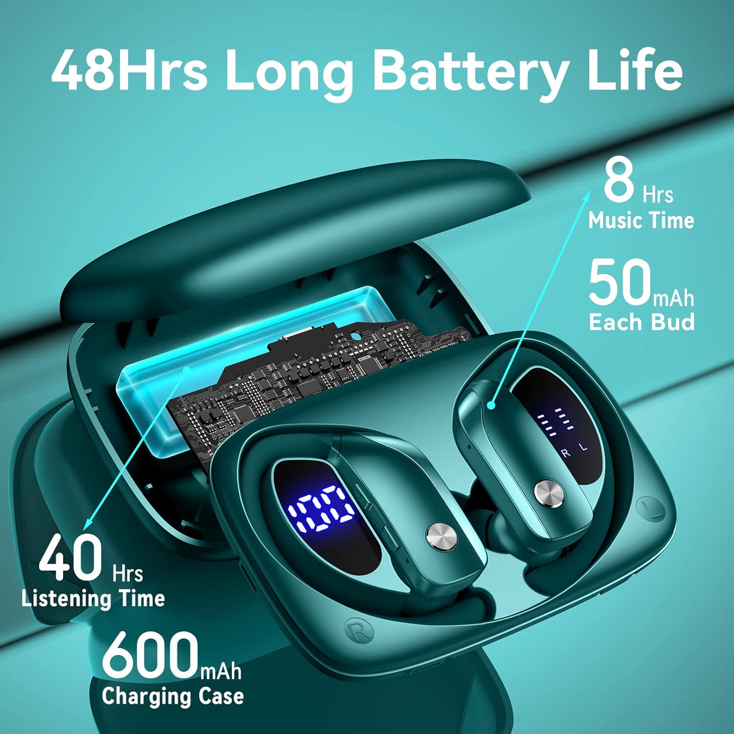 bmani Wireless Earbuds Bluetooth Headphones 48hrs Play Back Sport Earphones with LED Display Over-Ear Buds with Earhooks Built-in Mic Headset for Workout Green