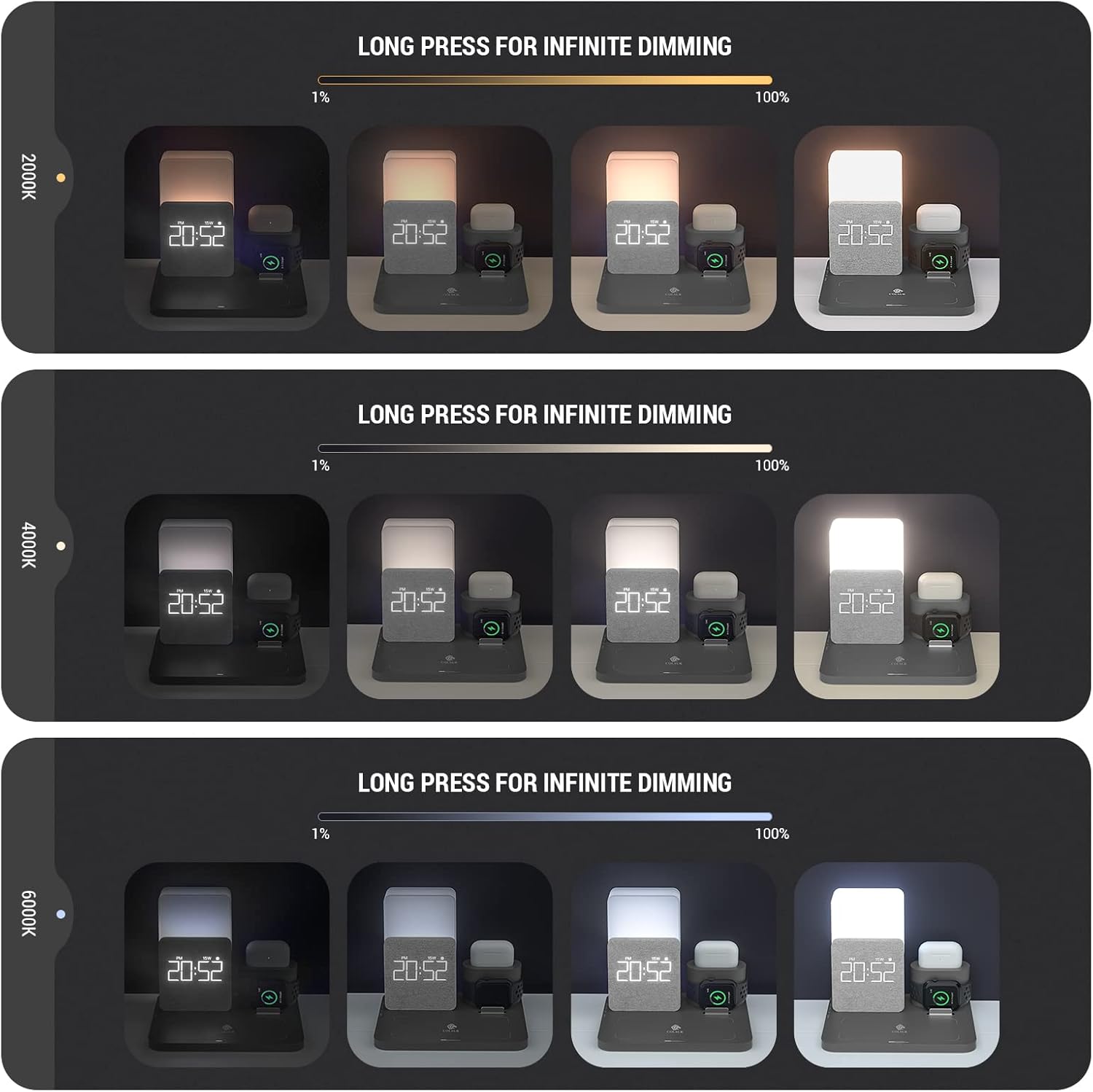 Wireless Charging Station, 3 in 1 Charging Station, Alarm Clock with Wireless Charger, Night Light, iPhone 12/13/14/15/16 Pro/13 Mini/13 Pro Max/12 pro, AirPods