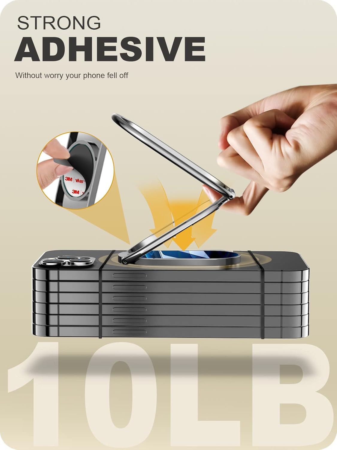 - ใ2025 New Version 3M Tape to Guard Your Phoneใ This iphone kickstand employs 2025 new version 3M tape. This strong tape ensure it sticks tightly to your phone and hold it strongly to reduce the risk of dropping it from your hand accidentally. As usual, keep your collapsible iphone ring holder grip functions like text or selfie with one hand. It will take 100% effect after 48 hours in the first stick and it will leave no adhesive residue on your phone after you removed it.