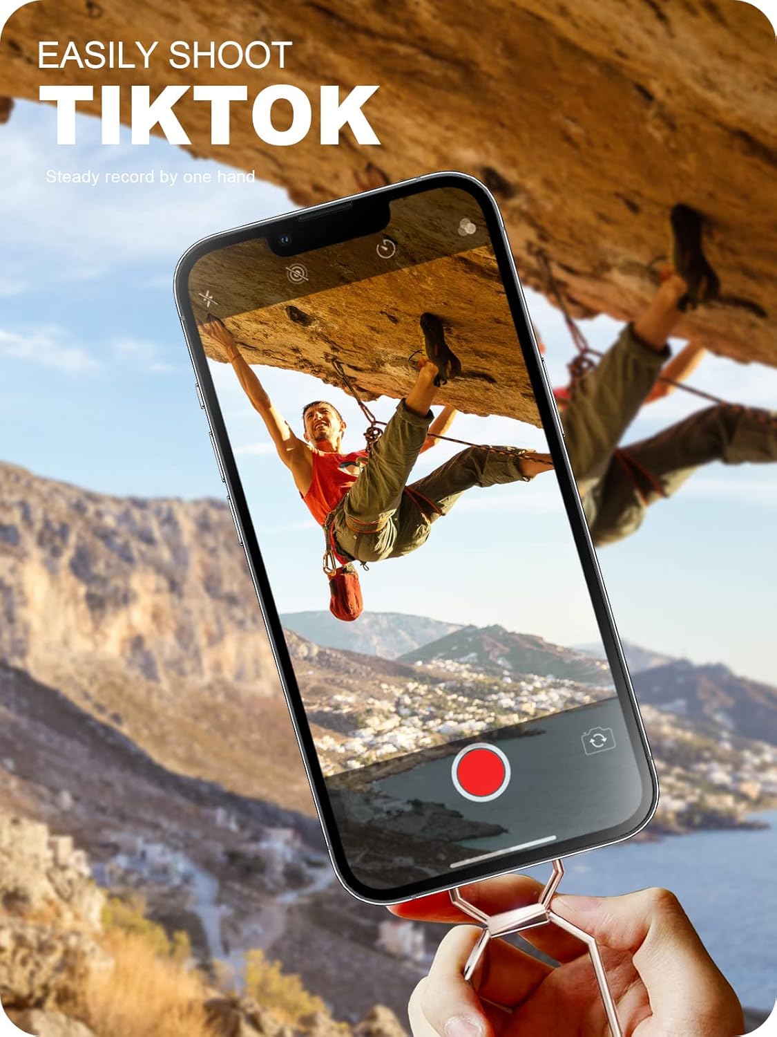 - ใHold Your Phone Stably in Various Angle by 2 Rotational Arms & Baseใ This phone kickstand adopts 2-jointed 180ยฐadjustable arms and base offer you 360ยฐrotation. You can hold your phone at any angle and height as you like. The iphone grip can help you to shoot the Vlog or TikTok by holding it horizontally or vertically with one hand. Working as fodable iphone holder grip or handy kickstand for phone if you'd like to set it on a desk to meet, cook, read, chat, dinner, exercise, and watch a video.