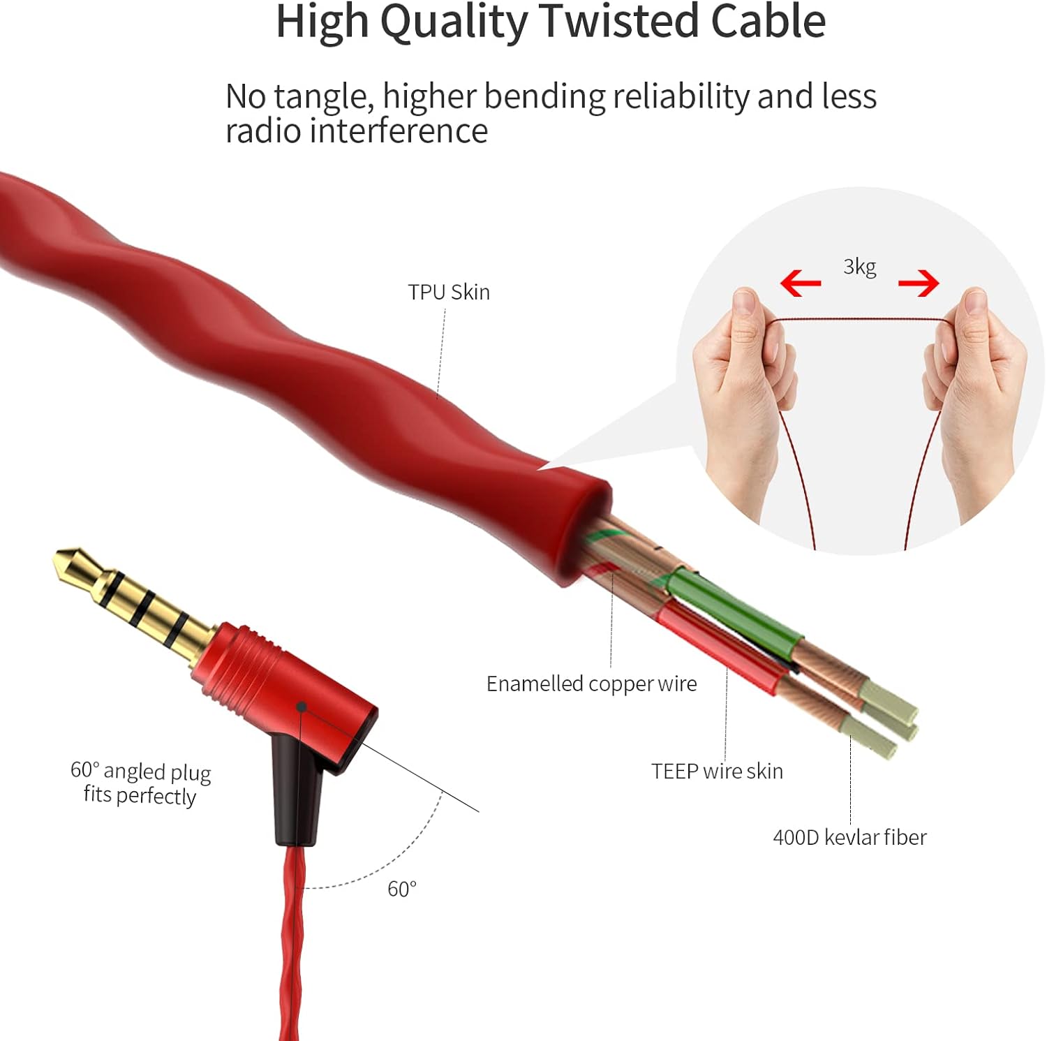 - 🎧 High Quality Twisting Core HiFi Cable: Twsiting core cable is more durability for bending and anti-tangle, it's better to reduce radio interence also.