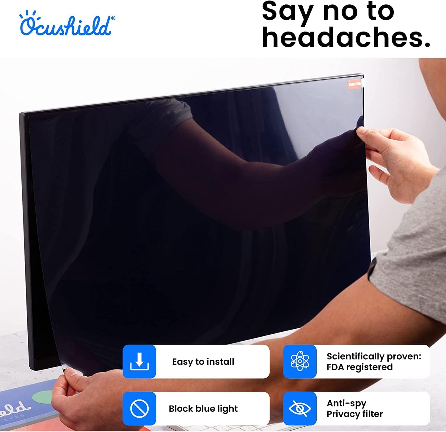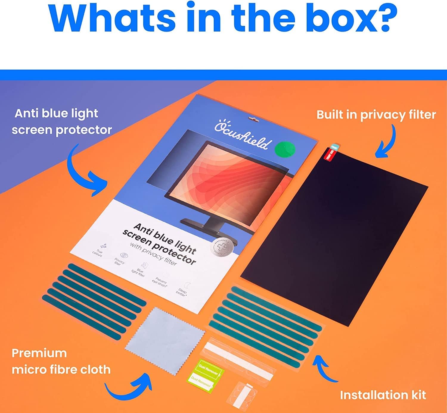 - Privacy Filter - Not only do our products protect your eyes and sleep, our monitor screen protectors include a privacy filter to keep those prying eyes away, plus oleophobic coating to ensure your screen is protected from grubby fingers.