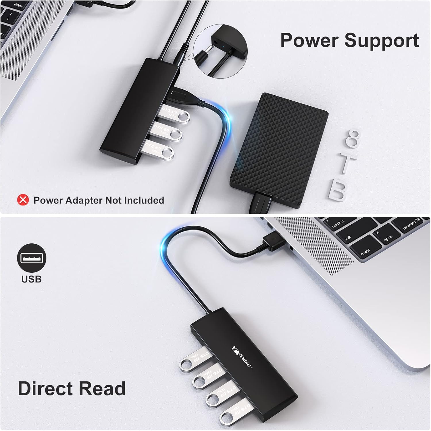 USB Hub,VEMONT 4-Port USB 3.0/2.0 HUB,Ultra Slim Portable High-Speed USB Splitter Applicable for PC Laptop, Desktop, Notebook, MacBook and More