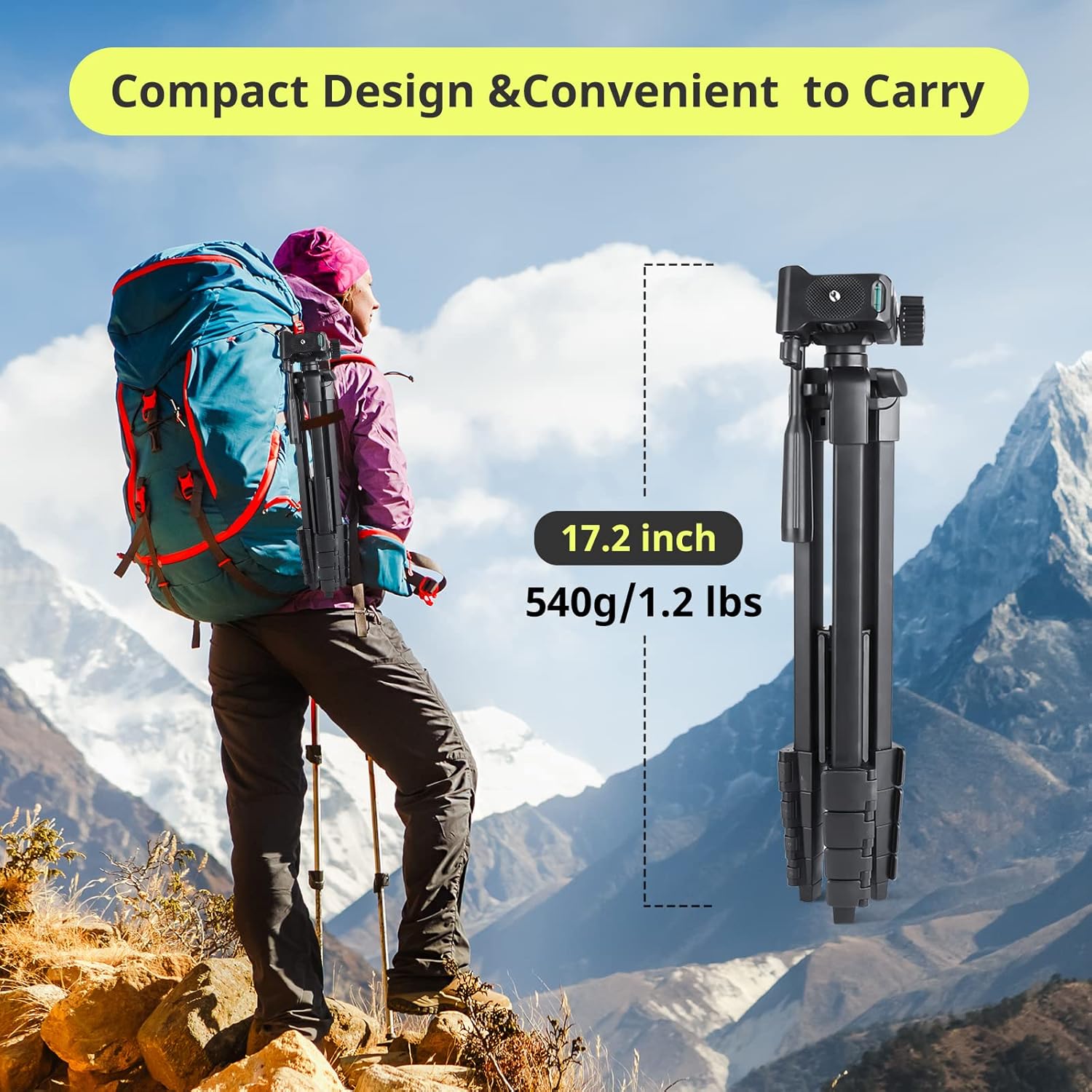 - 4-level Heights & 3-way Pan Head: Easy to set up, freely adjust quick flip locks to get the desired height. Perfect for photos or taking hands free videos without needing to rely on extra help. Flexible pan head offers landscape, vertical, low angle and high angle shooting choices. No more having to ask someone to be the photographer