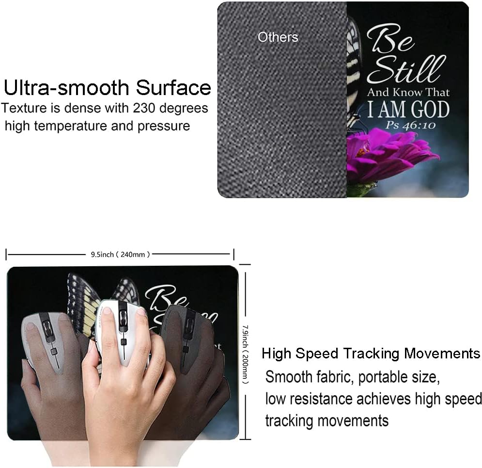 Hokafenle Mouse Pad, Butterfly Mouse Pad with Inspirational Quote Design, Square Waterproof Cloth Mouse Mat Non-Slip Rubber Base Computer MousePads for Office Laptop, Psalm 46:10