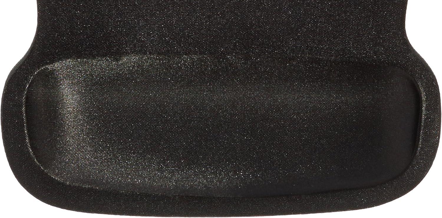 - Black mousepad with unique comfort gel-filled cushion conforms to your wrists for maximum comfort and support