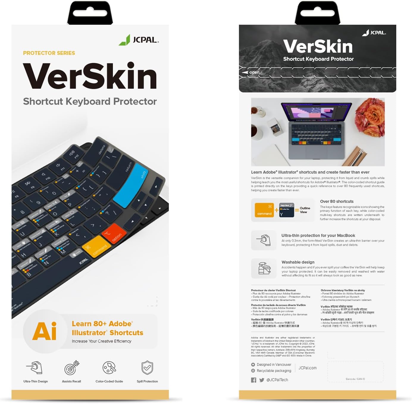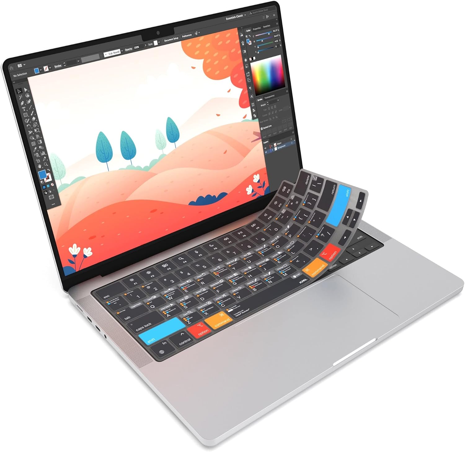 JCPal Adobe Illustrator Shortcut Guide Keyboard Cover for Apple MacBook Pro 14 inch and MacBook Pro 16 inch (M1-M4 Models) and MacBook Air 13 inch and MacBook Air 15 inch (M2-M4 Models) (US-Layout)