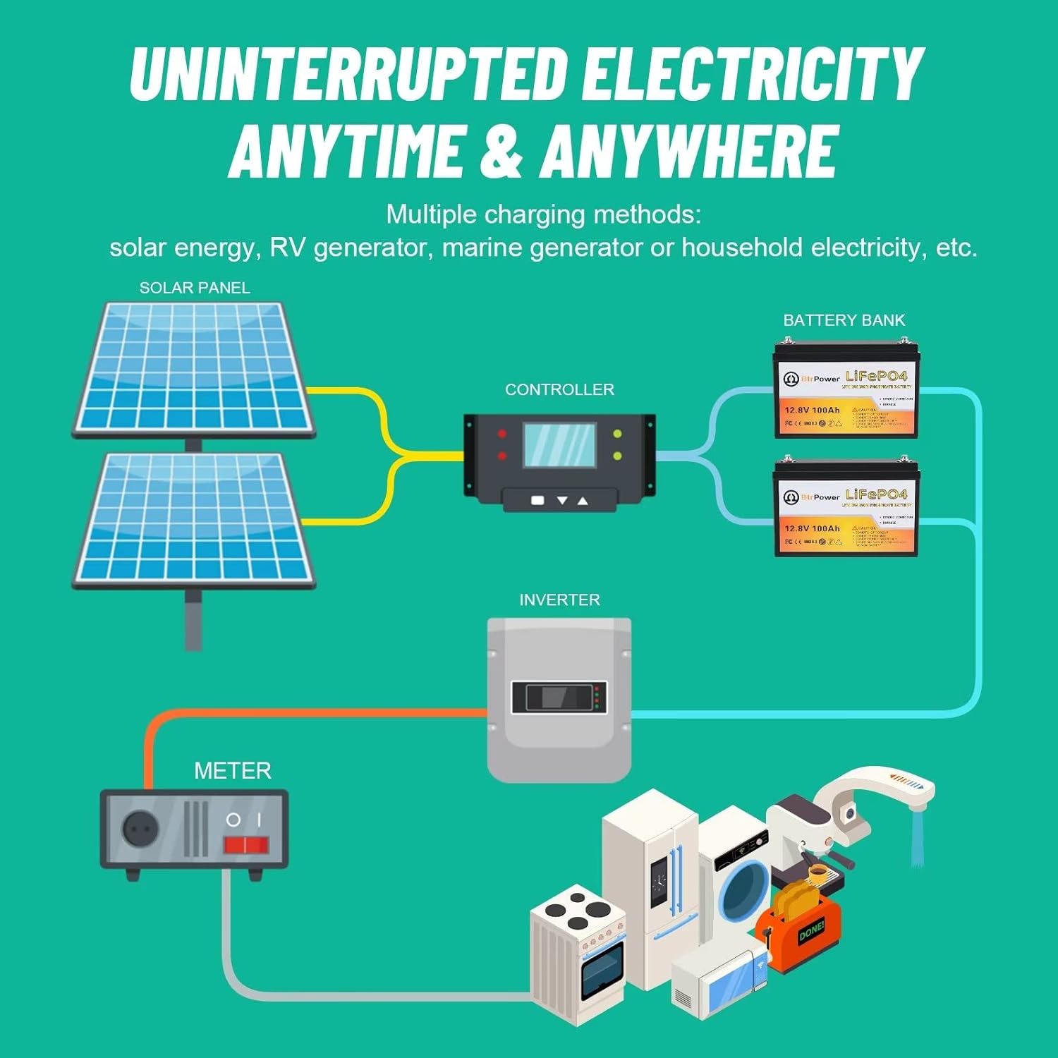 12V Lithium Battery-100Ah Lithium Phosphate Iron LiFePO4 Deep Cycle Battery,100A BMS,4000+ Cycles,Perfect for RV,Trolling Motor,Home Storage,Solar Power System and Outdoor Camping