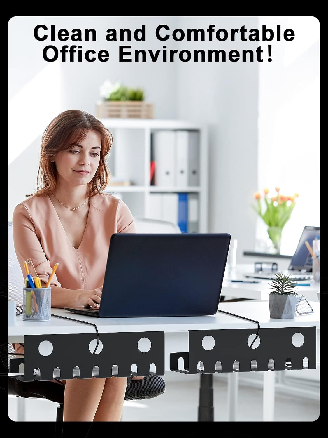 - 【High-Quality Metal Cable Management Under Desk】The under desk cable management contains two U-shaped channels cord organizer for desk crafted from pure metal, offering a high-end texture and robust, stable construction. The rounded corners and smooth surface of our desk cable management guarantee no harm during use, providing a safer environment for you and your family. This under desk organizer is undoubtedly the optimal solution for under desk cable management