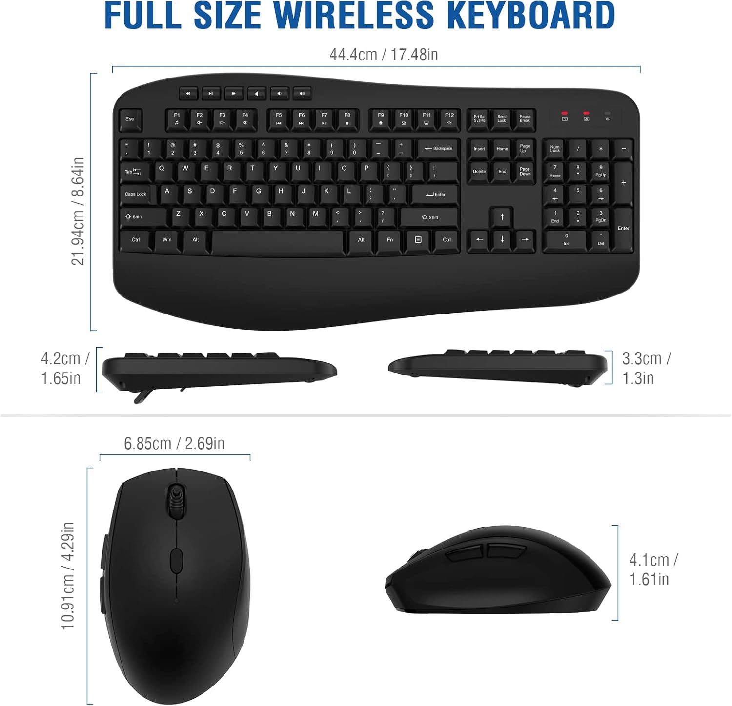 - ▶【12+6 Multimedia Hotkeys & 3 Indicator Light】: This wireless keyboard has 12+6 multimedia hotkeys that allow you to reach the Email, Music, Volume Control and other applications in one step, make your work easier. There are also has 3 Indicator light (Number Lock indicator/ Caps Lock indicator/ Power indicator) on the keyboard that allows you to know the working status of the keyboard at any time.