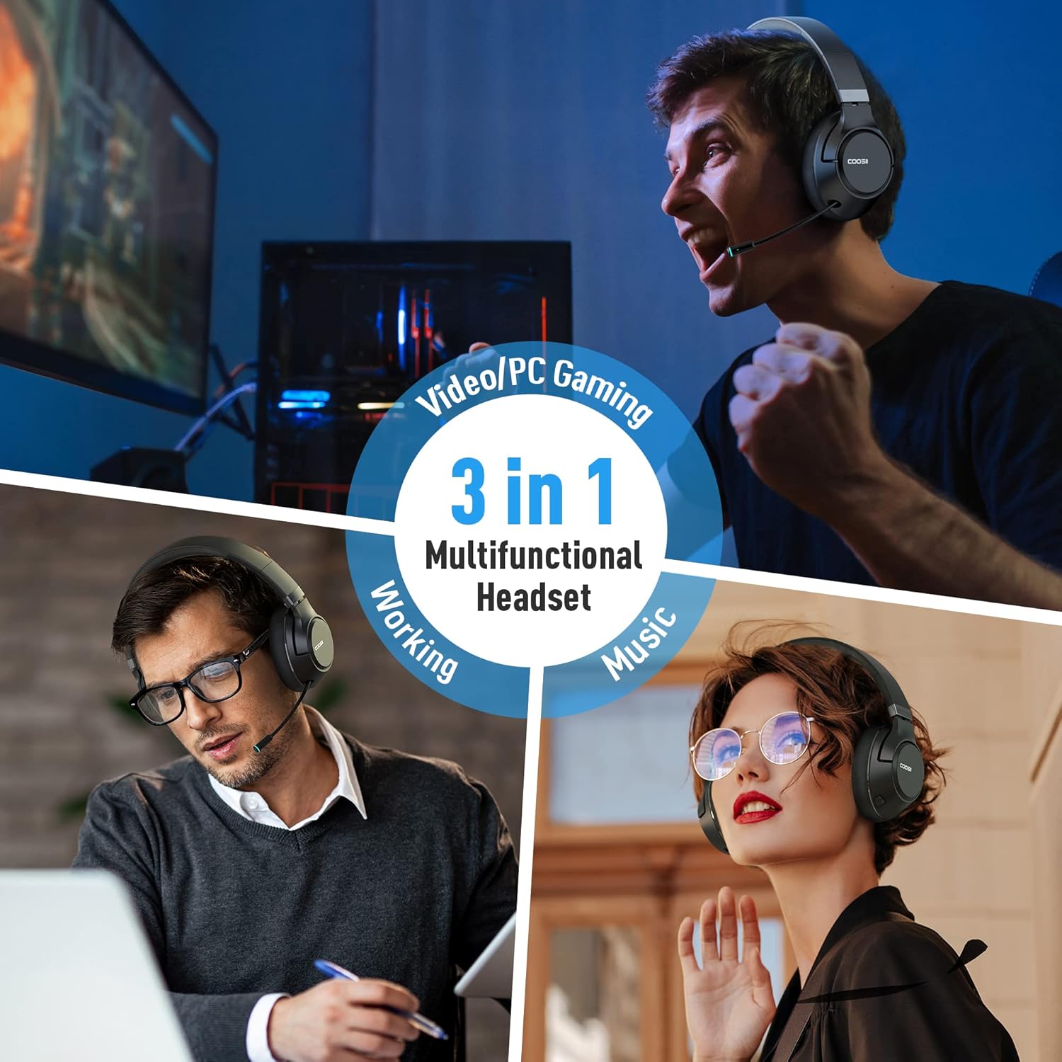 Wireless Bluetooth Headsets with Microphone for Computer, Headphone Foldable Over Ear Soft 40H with Retractable Mic, USB Dongle for PS5 PS4 PC Cellphone Laptop