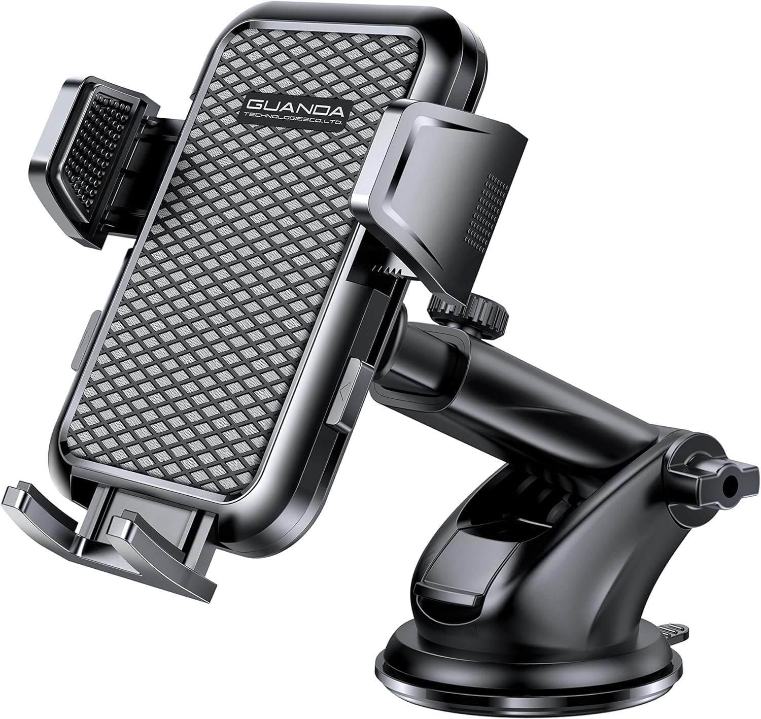 - ✅【POWERFUL STABILITY】The upgraded phone mount clamps with anti-slip pads can hug your mobile phone tightly. Military-grade shockproof panel provides full protection for your smartphones, increase friction, ensures absolute stability. Also, with extra strong lock mechanism of the suction cup and super sticky gel pad, Guanda hands free phone mount for car can securely and stable stick on the dashboard/windshield/desk. Apply to cars/trucks/SUV/taxis. Good assistant for Uber, Lyft drivers.