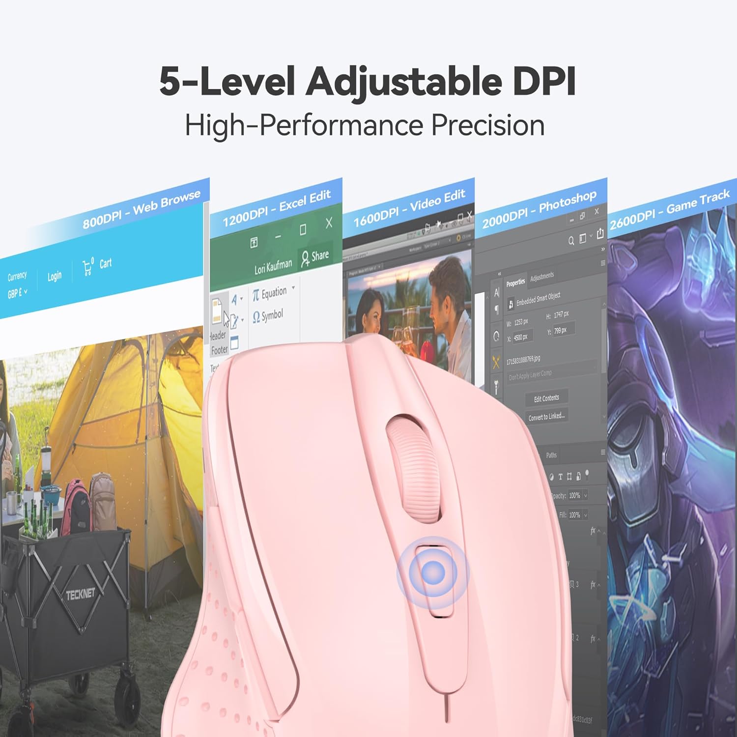 - Advanced Optical Tracking: Featuring 6-level adjustable DPI (800/1200/1600/2400/3200/4000), this mouse provides high-performance precision and smart cursor control on most surfaces.