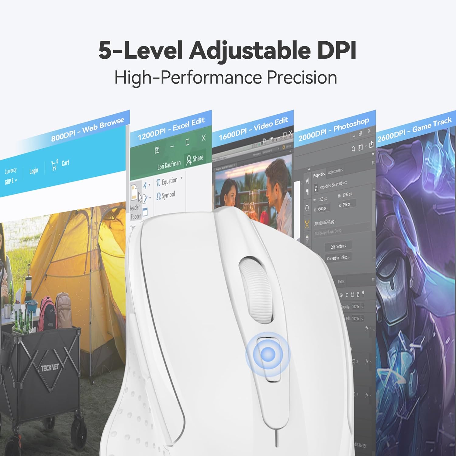 TECKNET Wireless Mouse, 2.4G Ergonomic Optical Mouse, Computer Mouse for Laptop, PC, Computer, Chromebook, Notebook, 6 Buttons, 24 Months Battery Life, 4000 DPI, 6 Adjustment Levels