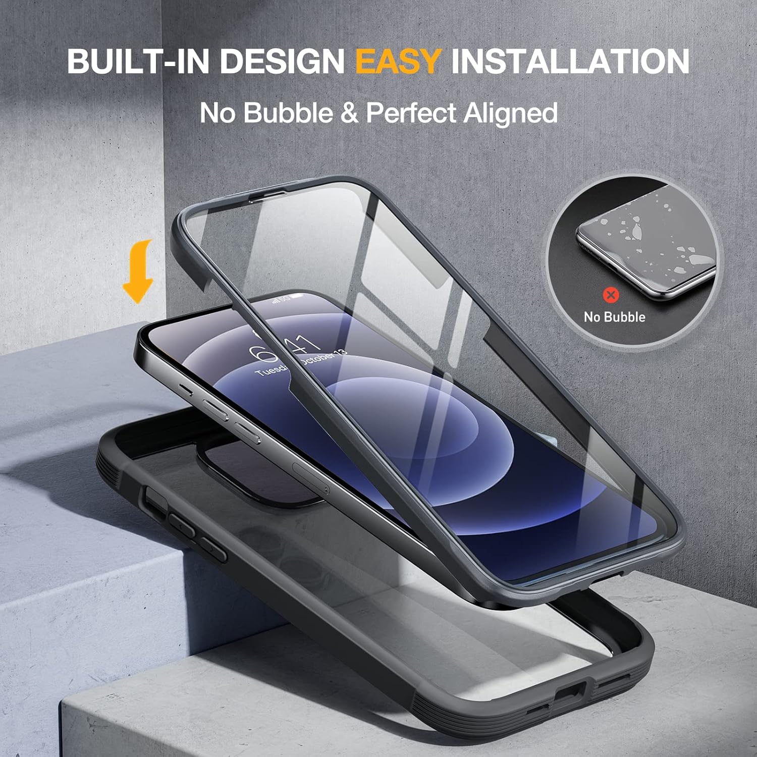- [9H TEMPERED GLASS SCREEN PROTECTOR + CAMERA PROTECTOR] This protective case for iPhone 12 / 12 pro features a built-in premium 9H hardness ultra-thin HD tempered glass screen protector and camera protector. It provides maximum protection from scratches, scrapes, bumps, and any other accidents while maintaining the original response sensitivity.