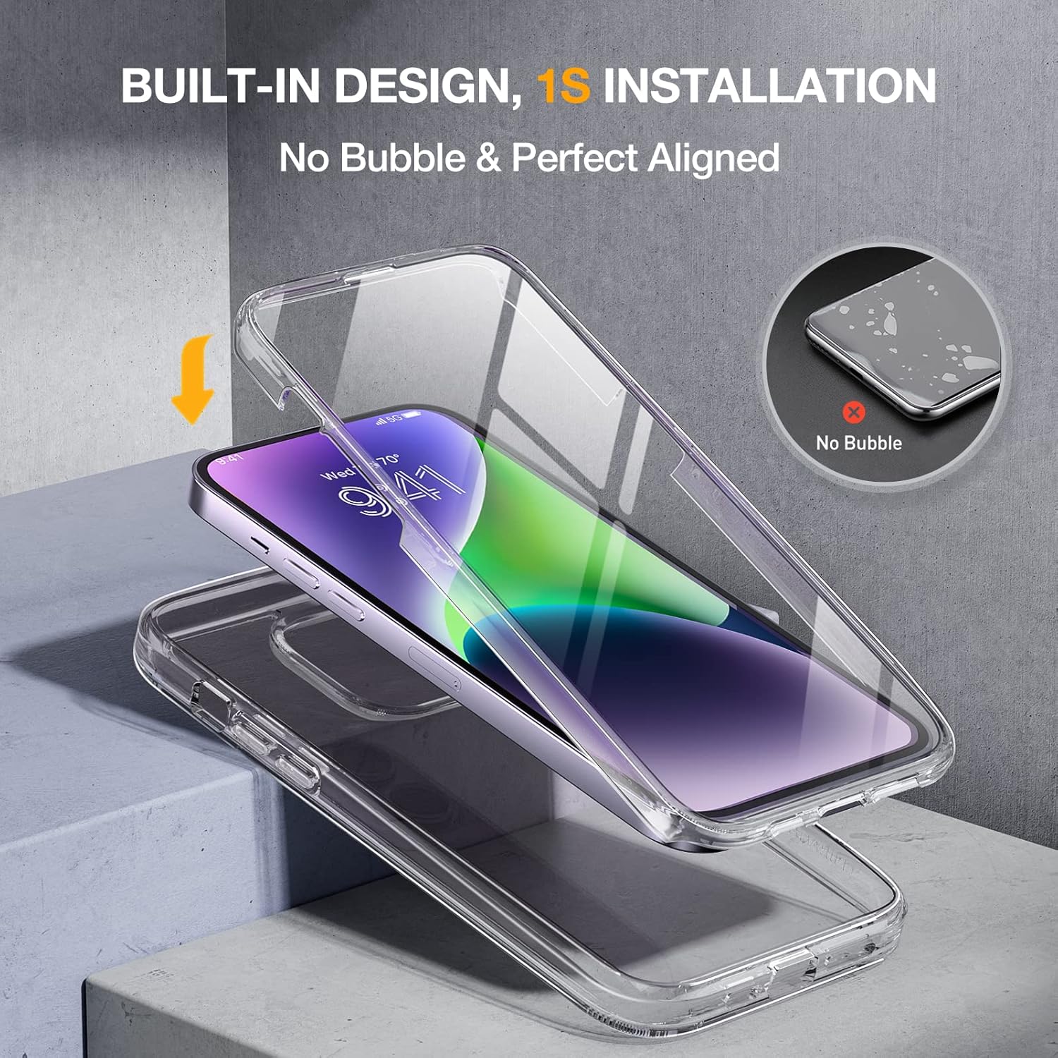 Miracase Class Series for iPhone 14 Case 6.1 inch, [Built-in Tempered Glass Screen Protector] [Bubble Free] Full-Body Protective Bumper Phone Case with Camera Lens Protector, Clear