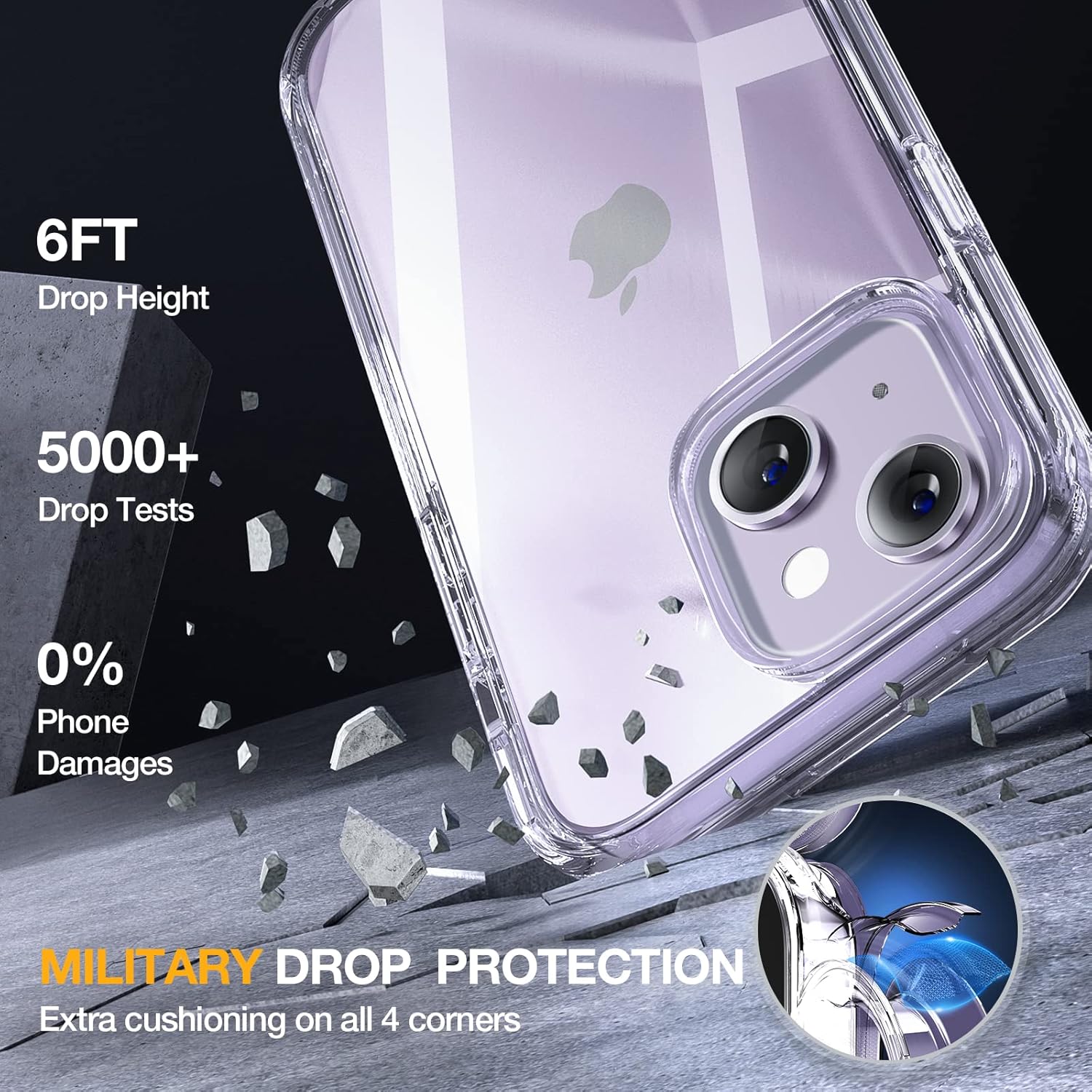 - [360° Full-Body Rugged Protection] Full-body protective case for iPhone 14 . Tested to survive drops and made of flexible TPU materials. Its Tri-layer structure absorbs and deflects impact that blocks dirt and dust. Elevated lips around the camera and the screen are added against untoward scratches.