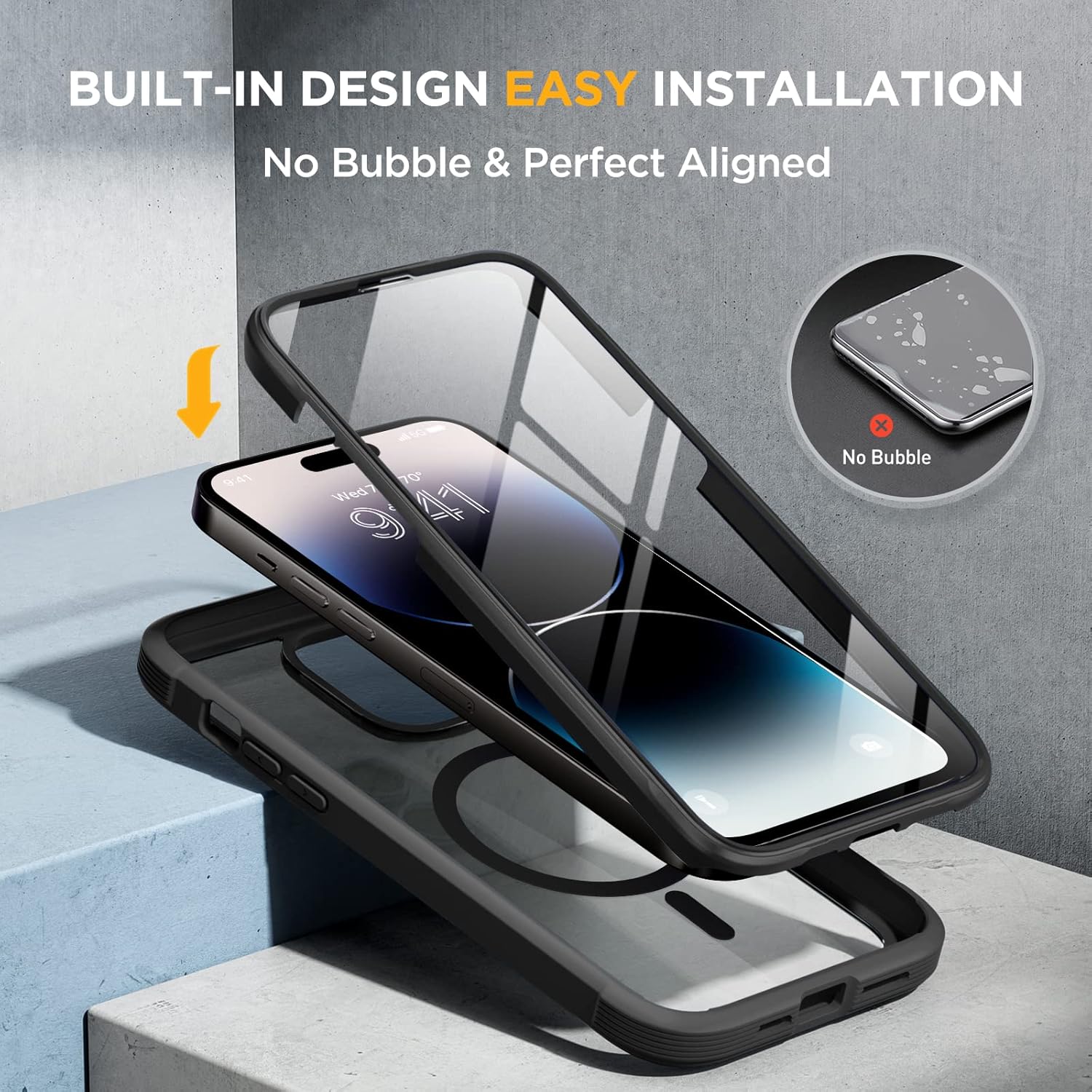 - [360° Full-Body Rugged Protection] Full-body protective case for iPhone 14 pro max. Tri-layer structure absorbs and deflects impact that blocks dirt and dust. Elevated lips around the camera and the screen are added against untoward scratches.