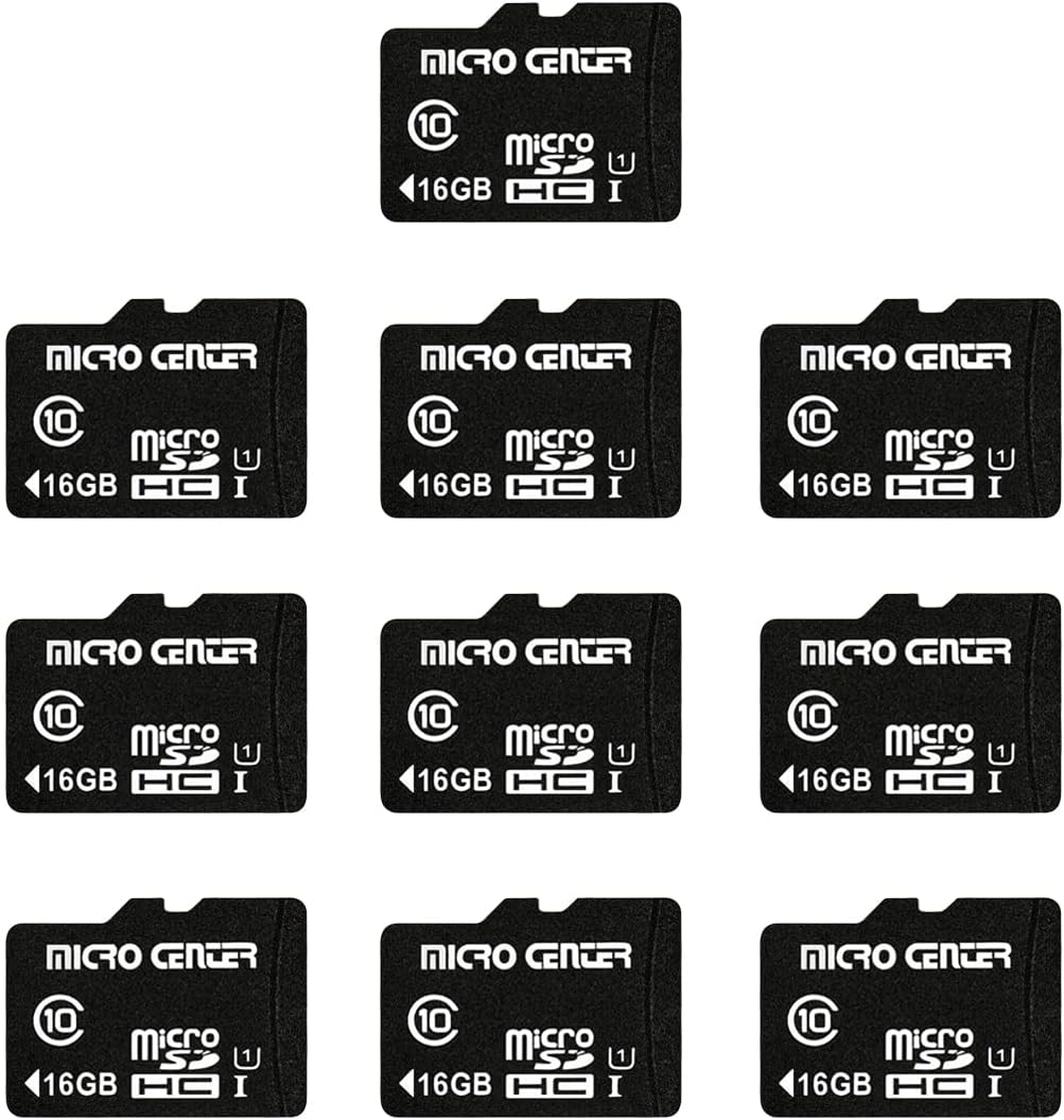 Micro Center 16GB Class 10 MicroSDHC Flash Memory Card with Adapter for Mobile Device Storage Phone, Tablet, Drone & Full HD Video Recording - 80MB/s UHS-I, C10, U1 (10 Pack)