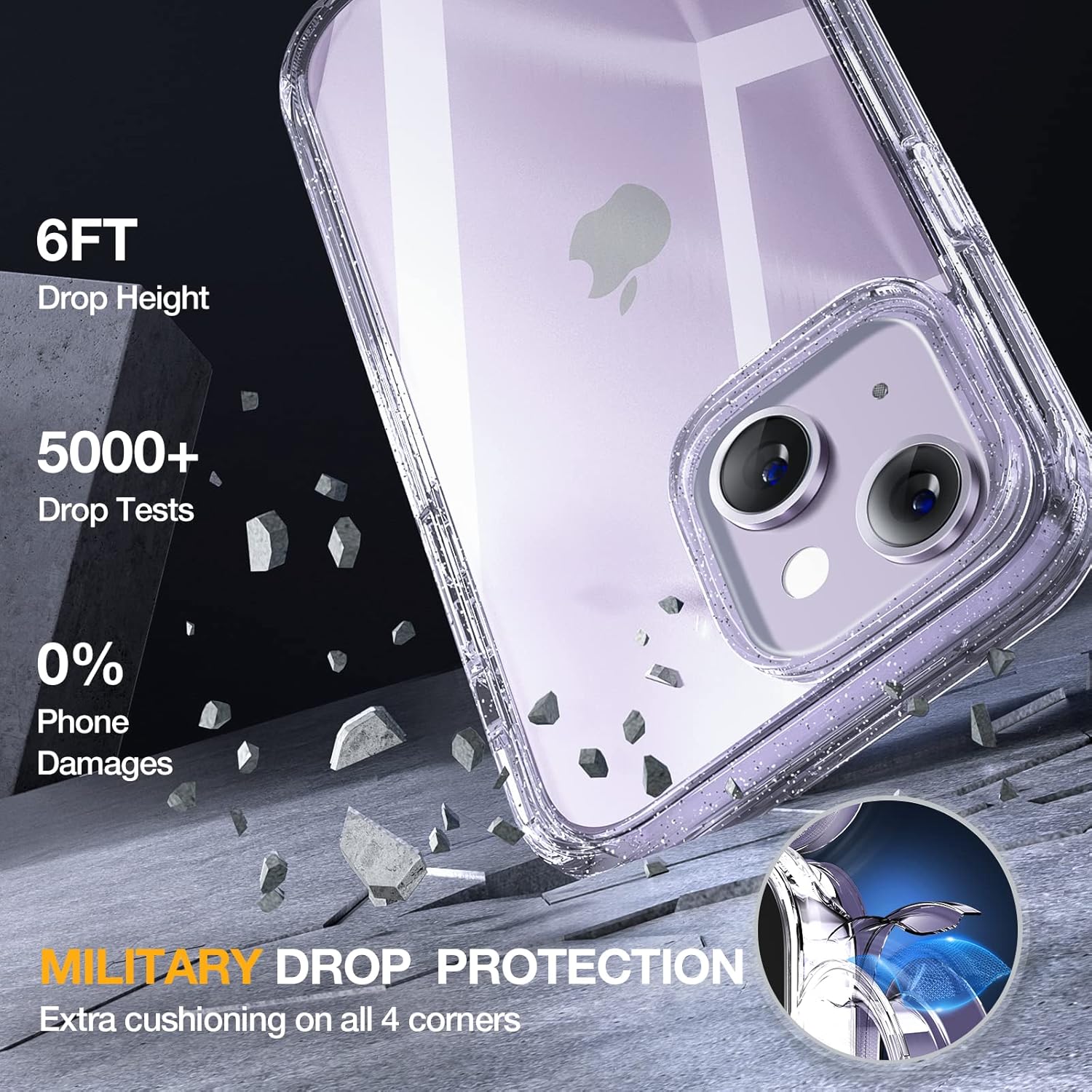 Miracase Designed for iPhone 14 Case 6.1 inch, [Built-in Tempered Glass Screen Protector] [Bubble Free] Full-Body Protective Bumper Phone Case with Camera Lens Protector, Clear Glitter
