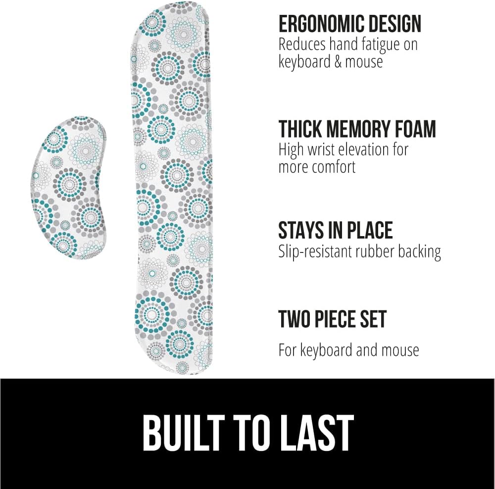 - SUPERIOR CONSTRUCTION: featuring a 3 layer design, the rests are designed for long lasting use; durable rubber bottom stays in place on most surfaces; thick inner memory foam material for extra support; soft top spandex layer for additional comfort; wrist rest measures 17 by 3.5 inches, making it a perfect fit for most desks; mouse pad rest measures 6 by 3.3 inches
