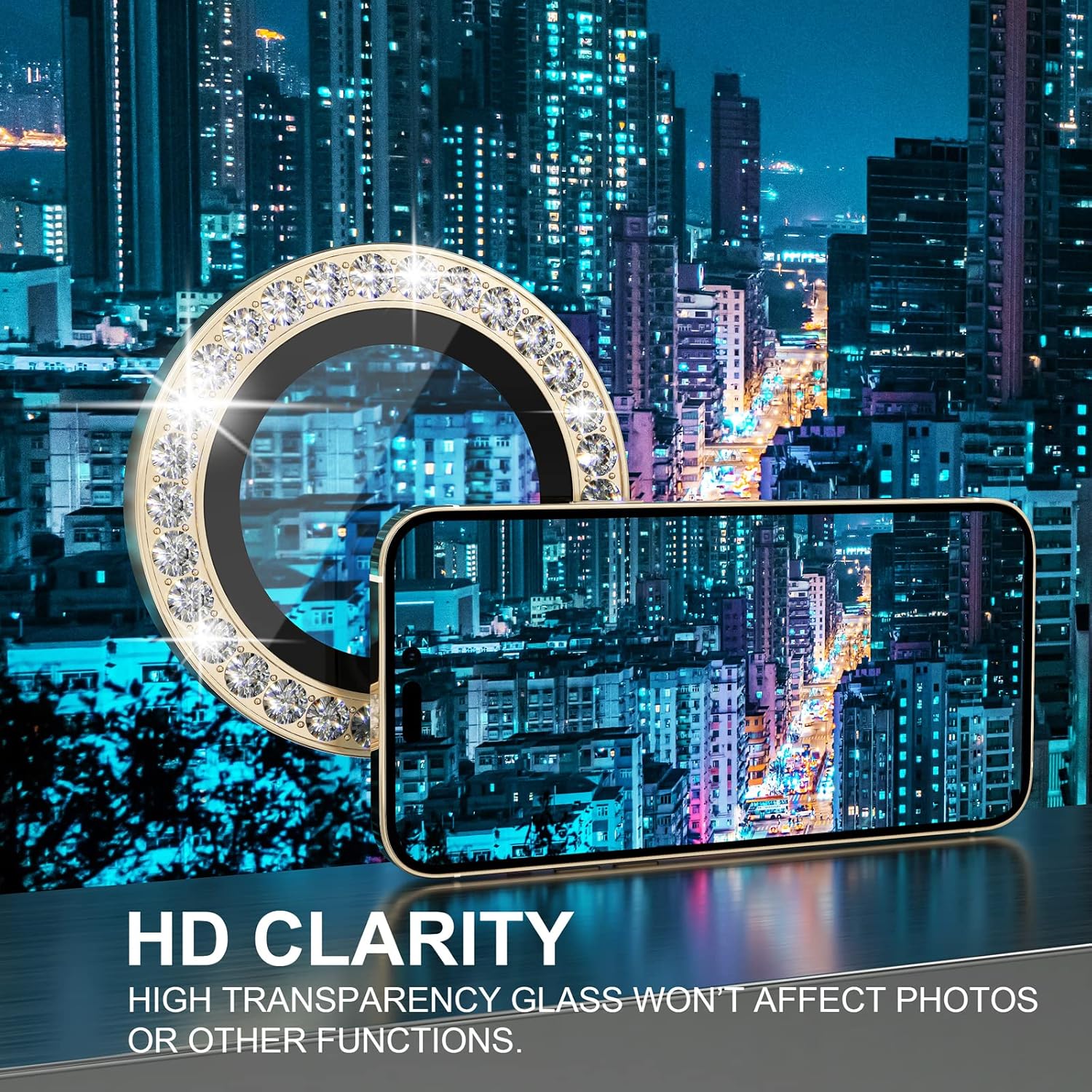 - Personalized Decoration: Made of high-quality aviation aluminum metal ring and 9H tempered glass and inlaid with bling rhinestones to give your iPhone 14 Pro/Pro Max camera lens a diamond gorgeous appearance, shining in the sun, very eye-catching and complimentary.