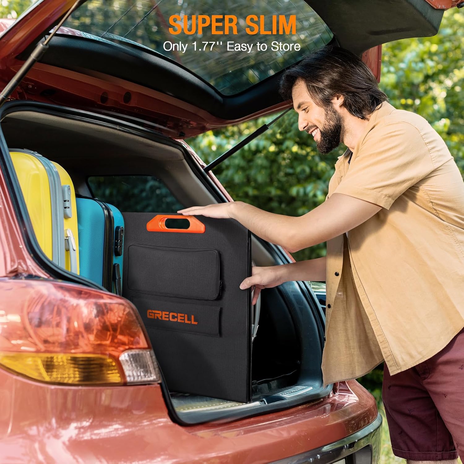 - PORTABLE & SUPER SLIM - With a folded size of 21.46*22.95*1.77 inches and a lighted weight of only 10.14lbs, the GRECELL UB200 is 30+% lighter than other 200W solar panels and more portable with one hand. With super slim unfolded thickness:0.98inch, it will not take up much space when stored or used. 4 adjustable kickstands, 4 metal reinforced mounting holes to help you fold/hold/hook it up anywhere.