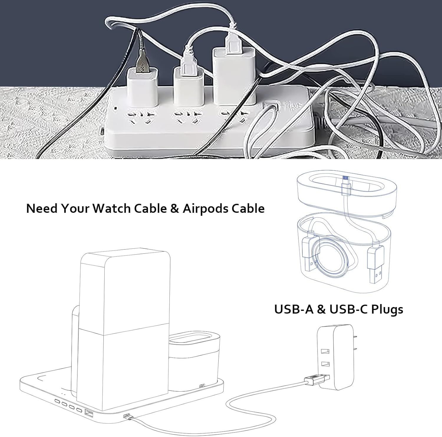 - [Portable Cable Storage Box] Storing the cables of watch and earphones, saving space and easy to carry. For Android and Apple users, we provide different box covers. Except connecting to the base, it can also be charged by Type-C interface on the box back, convenient for travel.