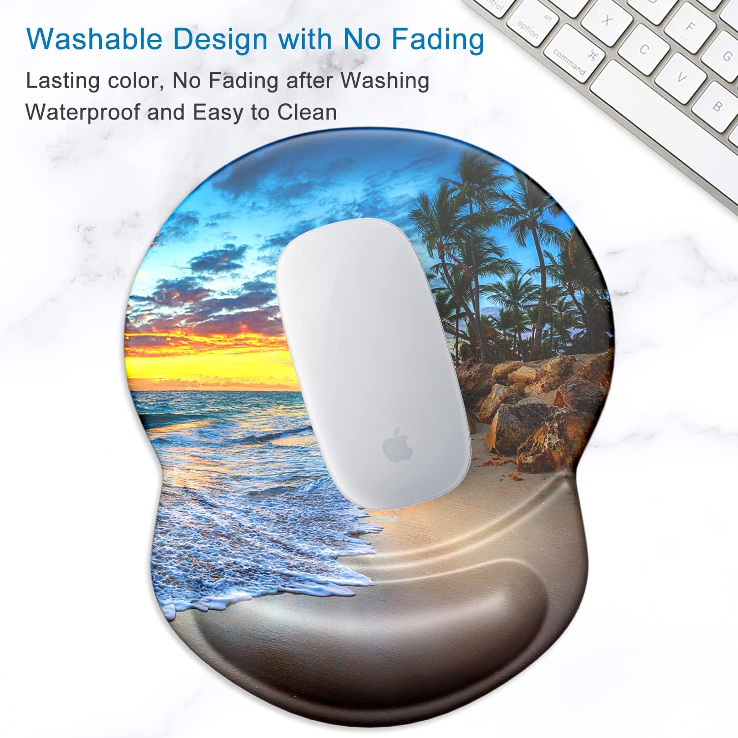 ITNRSIIET Ergonomic Mouse Pad with Gel Wrist Support Small Wrist Rest Smooth Surface Non-Slip PU Base Comfortable Office Supplies Pain Relief, 8.7 x 7.2 inches, Beach