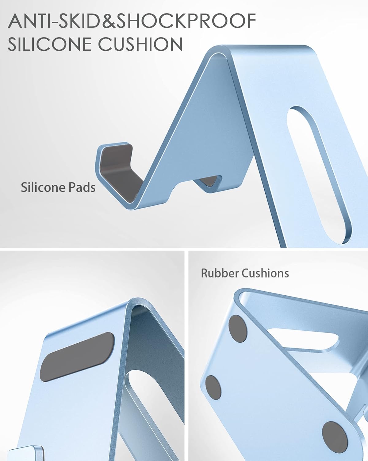 - Study Construction & Rubber Pads: Sturdy aluminum body, with a sturdy construction, can hold your phone steadily. Rubber pads and feet protect your device from scratches and sliding.