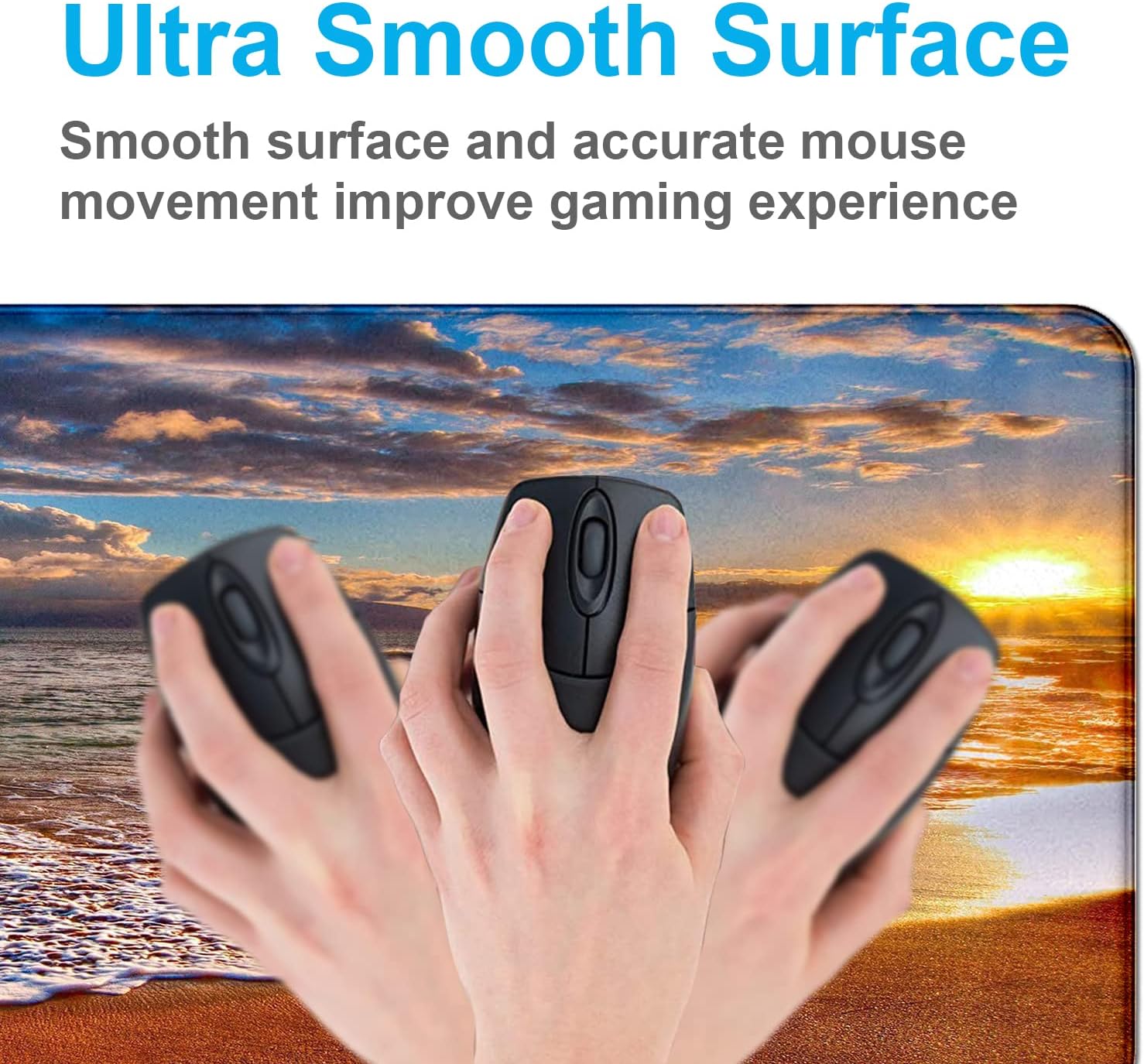 Large Extended Gaming Mouse Pad with Stitched Edges, Non-Slip Waterproof Rubber Base Mouse Pad for Office, Computer, Keyboard, Laptop and Home Desk Pad 35.4 x 15.7 x 0.12 Inch (Beach at Sunset)