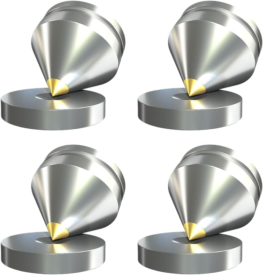 - Keep Vibration Away:great product from hi-fidelity lovers,the speaker isolation spikes is great for small speakers or CD player