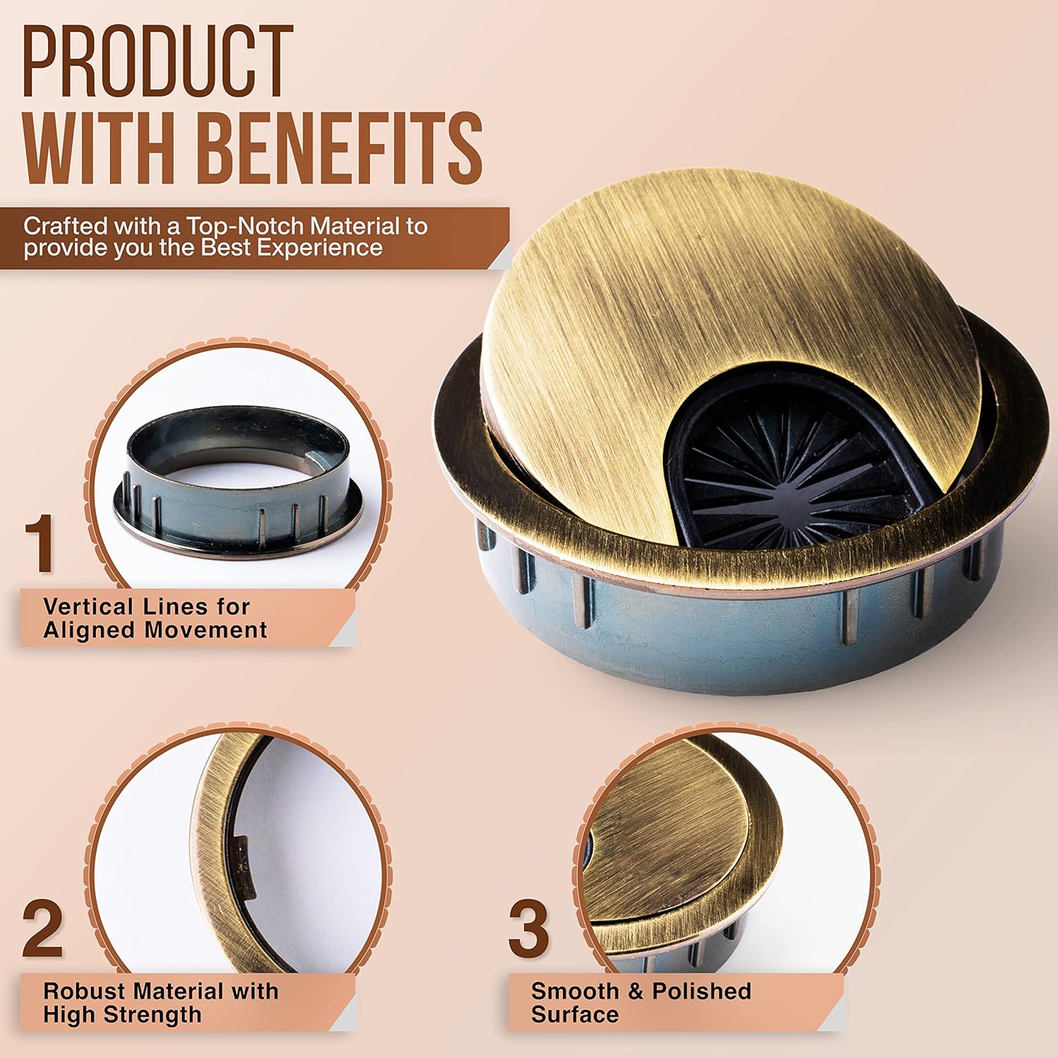 - Clean & Spacious Work Environment: Zinc Alloy Metallic Cable grommet is used for cords or wires management on your working desk to provide a clean and organized work environment
