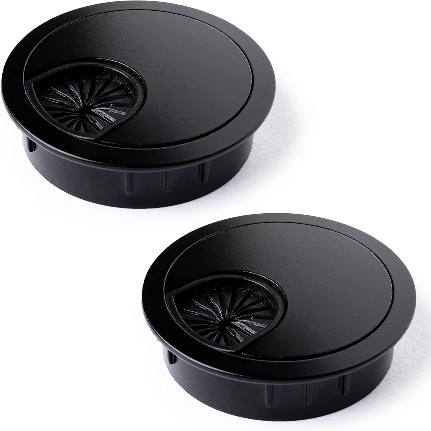 MAHDPRO Metal Desk Grommet 2 Inch (50 mm) Pack of 2-Flat Black Zinc Alloy Metallic Desk Cord Hole Cover to Arrange Cables & Wires Through Computer Table/Countertops