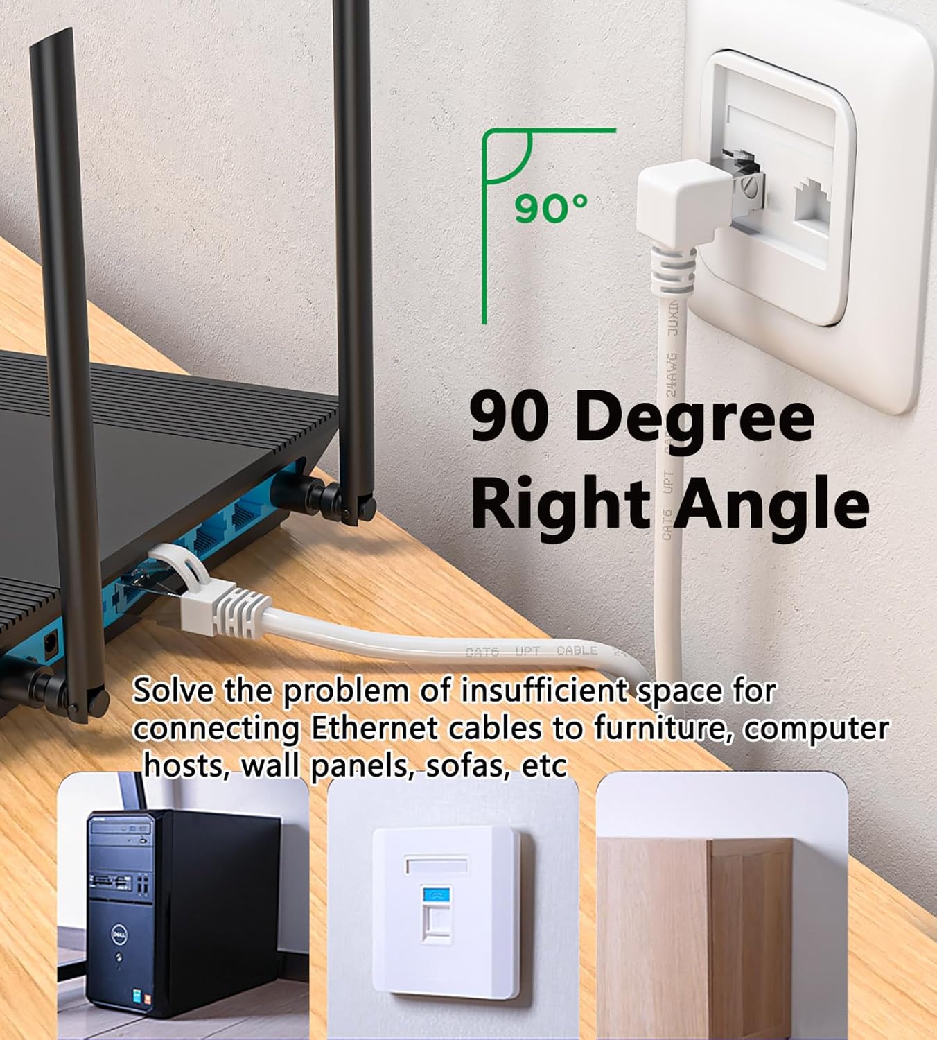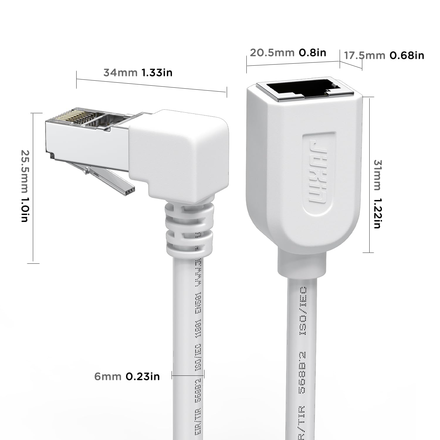Right Angle Ethernet Extension Cable UPangle 1.5ft-White, 90 Degree CAT6 Ethernet Patch Cable RJ45 LAN Cable Extender Male to Female Connector for Router Modem Smart TV PC Computer Laptop