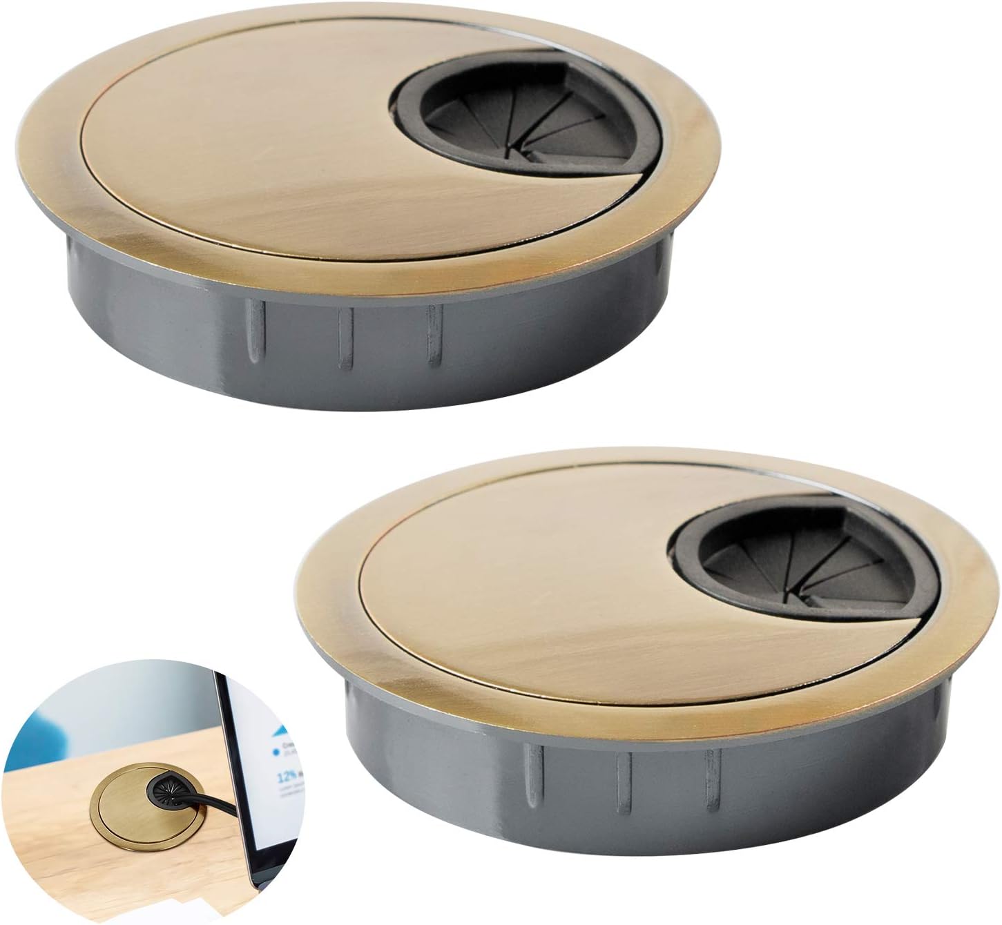 Desk Grommet for Wire Organizer,PC Computer Desk Plastic Grommet Cord, Tidy Cable Hole Cover Organizers,2 Pack (60mm, Gold)